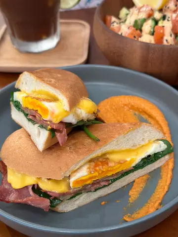 这间cafe 虽然是小店,但环境很舒适,也很阔落,完全没有压迫感.食物方面多选择,也很特别💠烟肉芝士蛋拖鞋包 $82烟肉搭配浓郁的芝士,有咸香的味道,搭配蛋的滑嫩,配西班牙的烤红椒坚果酱,引人食欲😝外皮酥脆,内馅丰富.💠三文鱼鱼生饭 $128三文鱼新鲜,口感软稔的牛油果,搭配醋饭的微酸,再配有是拉差沙律酱,带有少少微辣口感. 用上意大利红米,很健康😙💠Honey & Lime Coffee $50蜂蜜的甜味和青柠的酸味交织,有清新的口感,口感滑顺,酸甜平衡,蜂蜜的粘稠感与咖啡的浓郁.💠黑芝麻鲜奶 $45黑芝麻的香气浓郁,滑顺不腻☺️…查看更多