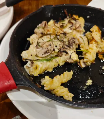 寻日特登嚟到megabox买嘢,顺便同屋企人食餐晚饭,呢间第一次嚟食,以前呢个位好似系另一间餐厅,我哋叫咗香草野菌芝士扭纹粉,加一个pizza同埋薯条小食,屋企人有叫酒饮🍕先讲个pizza,算系足料,辣辣地几惹味嘅,中厚,因为我唔食得辣净系食咗一块,味道ok嘅🍟薯条都中规中矩,上枱都系热辣辣嘅,有配一个沙律酱,几搭🍝本身好期待香草野菌芝士扭纹粉,但冇期待咁好食,味道唔差,主要系太油,食上层时都还好,扭纹粉冇咩咬口,但调味ok,食到下层成个底都系油,食唔落,唔知佢嘅烹调方式系点,但好地地一个扭纹粉搞到太heavy …查看更多