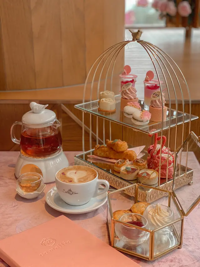 Attention 💖🌺 lovers! Pan Pan🥞👼🏼 got just the place if you’re in need of a weekend afternoon tea to chillax with your girlfriends!.Price :$268 +10% pp (incl. tea/coffee, selected drinks half price)Quality : 👩🏻🍳👩🏻🍳👩🏻🍳Recommend : 💖💖💖Service : 💁🏻♀️💁🏻♀️💁🏻♀️💁🏻♀️(Ratings out of 5).OVERALL: has 2 outlets in HK ( & The Peak), Pan Pan 🥞👼🏼 checked out Camellia Garden at The Peak, it’s surprisingly not that crowded even on a weekend & their service is super attentive (servers are more than happy to help you take many photos & good at it!📸). It’s nice that they’ve a terrace area overlooking the plaza & mountains, but not advisable to dine out there due to summer heat 🥵 Also, they may consider having a more coherent soundtrack as they jumped from Adele to EDM to Westlife which could affect the overall vibe😂🎧DISHES:🥪Savoury - in general they taste better than expected & are flavourful. Personal fav was the creamy shrimp croquette 🦐, pretty tasty & fried well.🍰Sweet - beautifully curated, all sweet items are definitely on a sweeter side🍬 Those pink cream puffs are for sure instagramable 🦢!🍪Cranberry & Almond Scone - only available option (no plain ones), it is served hot but the clotted cream could be better, it is unlike the usual ones with thick & creamy texture, this one is more foamy/thin🤔, also couldn’t really taste the almond.☕️Tea - there’s a selection of teas (and coffee/special mocktails), worth mentioning is there’re hard sugar cubes resting at the bottom of the pot, but they melt super slow & does not make the tea that sweet. Interesting!…查看更多