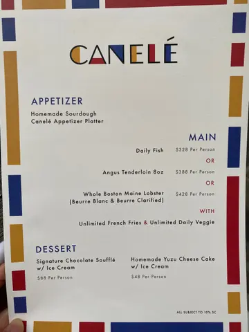 即使社区已经复常,但weekday嘅soho 区都系水静河飞. Randomly pick咗间餐厅,竟然有意外惊喜. 餐厅分两层,底层饮嘢为主,二楼系dining. 当晚二楼露台无开放,不过全晚得我哋一枱食饭,好似包场咁。我哋order set dinner, 前菜有几款dishes, main course 我就order lobsters, 朋友食牛,质素正常, 反而成餐饭最surprise 系甜品canele, 厨师有reheat过,外脆内软,而且唔算太甜, 超钟意. …查看更多