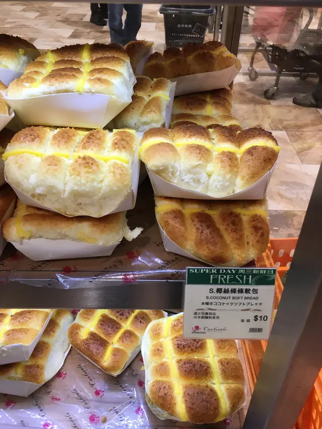 剛好Aeon週三超市特別多人,到這店買麵包的也比平時多人。雖然設有四個收銀處,還是有一條買麵包的長龍排隊,皆因配合週三新鮮日推出的週三特價商品,使用日本制麵粉,售價每個$10。其他麵包也只是$5。選了兩個軟包,排隊等候付款要十分鐘,兩個共$20。S.椰絲條條軟包,鬆軟滑溜帶椰香味,非常好吃。S.牛奶粒粒軟包,做得也非常鬆軟,不會有奶酥味,不用加牛油或果醬都入口好吃。若兩者比較,椰絲軟包比較上好吃過牛奶軟包。查看更多