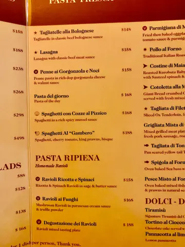 星期日晚同屋企人嚟食过early dinner,6:00到,开头成间餐厅得我哋,所以坐得好舒服,服务好好,装修简单,地方唔大,不过就好似意大利小镇里面嘅餐厅,有风味,楼面做嘢嘅都系意大利人,好亲切,佢哋嘅服务都好好,仲有好多交流,头盘pizza pasta每样都嗌左啲大家share,每道菜嚟嘅时间都好有安排,又唔会好赶,慢慢嚟,直至最后食咗成两个几钟,好开心,食物水准方面都唔错,同价钱成正比,味道亦都好正统,成晚嘅体验有置身意大利嘅感觉,好满足!…查看更多