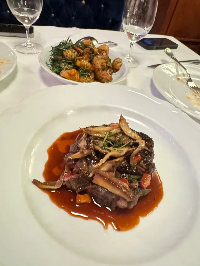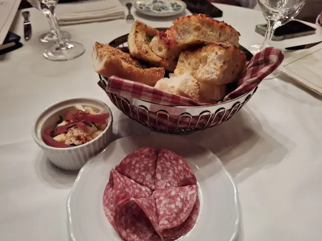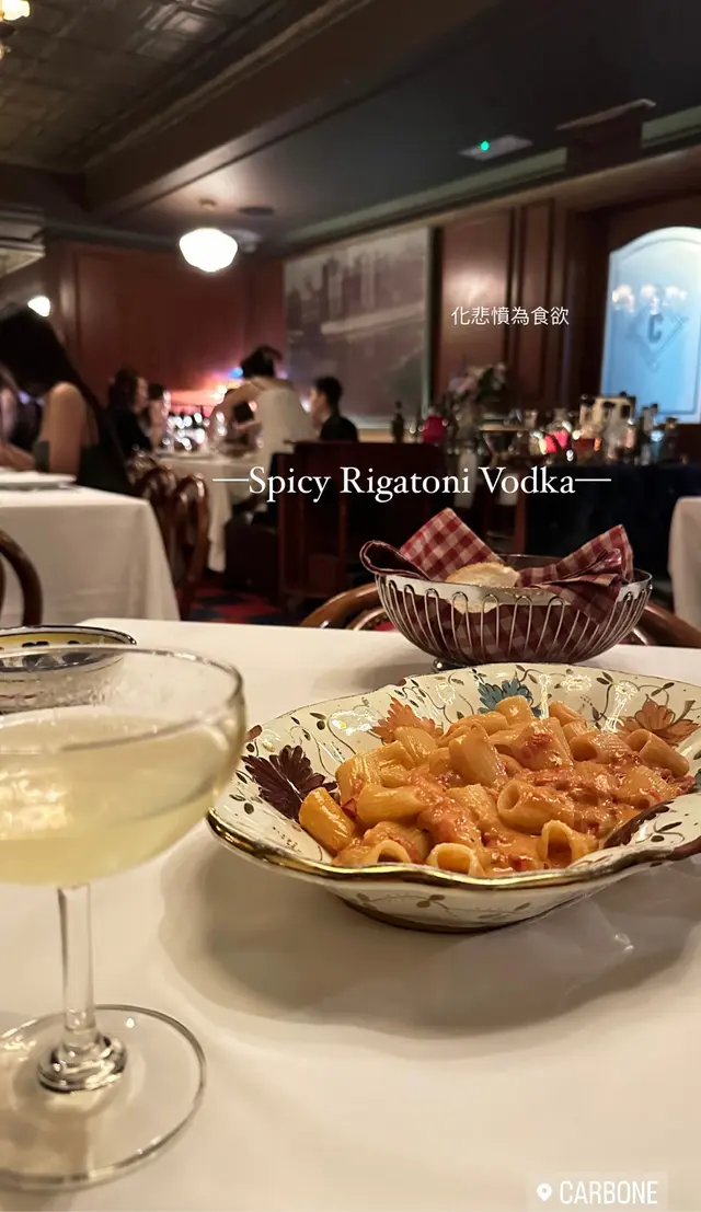 同朋友一齊試咗 Carbone,環境真係好有氣氛,好似走咗入一間地道意大利餐廳,浪漫又溫馨。食物方面,前菜唔單止有麵包,仲有芝士同埋Salami,好加分!主菜有啲驚喜,spicy vodka rigatoni 第二張圖嘅意粉用咗濃郁嘅醬,味道層次豐富,醬汁同意粉貼合得天衣無縫,咬落去有啲嚼勁,配上一啖白酒真係享受。牛排就更加出眾,煎得恰到好處,外層焦香,內裡嫩滑,上面有幾條野菌同濃汁點綴,增添咗 earthy 嘅風味。份量適中,適合一頓 leisurely dinner。另外提提有一個加分位係佢最尾每人都會送一shot lemoncello,為呢個晚餐畫上一個完美句號~整體嚟講,Carbone 嘅食物質素同 presentation 都係頂級,服務員態度友善,適合同親朋好友一齊慶祝特別日子。不過價錢偏高,建議預算好啲先去。夜晚用餐嘅氣氛加分,食完仲有種滿足感,值得一試!…查看更多