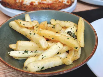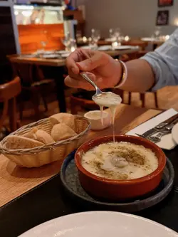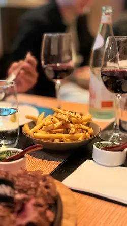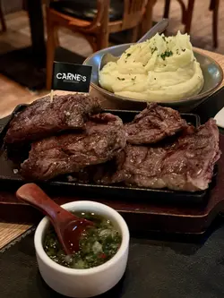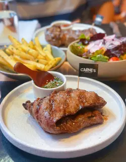 呢间餐厅装修走简约欧陆风,木质枱櫈配埋暖黄灯光,感觉浪漫。后面系开放式酒架,整体空间唔大,但布置得好好,坐低饮吓酒,气氛舒适,啱晒放工嚟relax服务员亲切,啱晒情侣或朋友小聚PROVOLETA CHEESE 波芙隆芝士:芝士熔得creamy,香味浓郁。芝士拉丝入口滑溜又咸香,配上面包好好食PROVENZAL FRIES 薯条炸得脆口,洒上蒜蓉同意大利香草,唔油腻。$78 唔贵,份量够两个人share。MIX CARNE’S 牛扒拼盘厨师推介 medium rare,牛肉烤得外脆内嫩,肉汁丰富。三款牛扒各有特色:西冷油花多、juicy;菲力嫩滑无筋;侧腹膜横肌(skirt)有咬劲,肉味浓。整体组合好平衡,食完好有层次感。三款菜式都推荐!份量较多, 最后需要TAKE AWAYThis restaurant features a minimalist European-style decor, with wooden tables and chairs paired with warm yellow lighting, creating a romantic atmosphere.At the back is an open wine rack. The overall space isn’t large, but it’s well-arranged—sit down for a drink, and the vibe is comfortable, perfect for relaxing after work.The staff are friendly, ideal for couples or small gatherings with friends.PROVOLETA CHEESE: The cheese melts into a creamy texture with a rich aroma. It’s stretchy, smooth on the tongue, salty and savory, and pairs perfectly with bread—delicious!PROVENZAL FRIESThe fries are crispy and fried just right, sprinkled with garlic and Italian herbs, not greasy at all. At $78, it’s not expensive, and the portion is enough for two to share.MIX CARNE’S Beef Steak PlatterChef recommends medium rare—the beef is grilled crispy on the outside and tender inside, with abundant juices.The three cuts each have their own charm: Sirloin has lots of marbling and is juicy;Fillet is tender and smooth without any sinew;Skirt steak has a good chew and intense meaty flavor.The overall combination is well-balanced, giving a layered eating experience.All three dishes are recommended!Portions are generous, so we needed to take away the leftovers in the end.…Read More