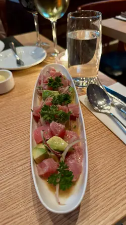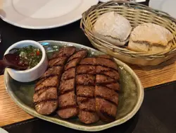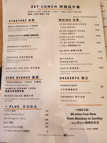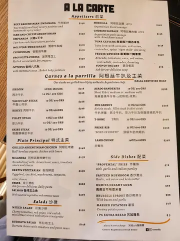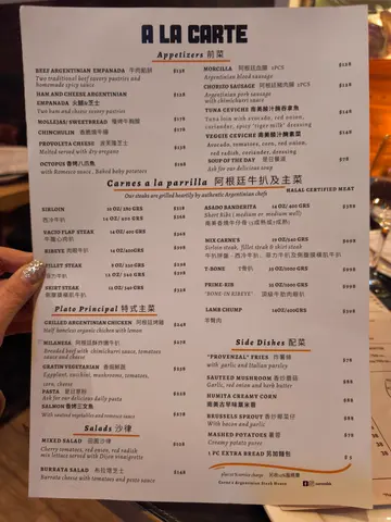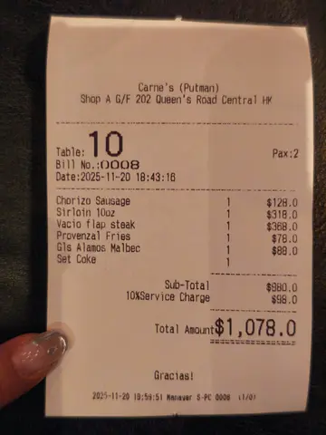今日多年冇见好友食饭,所以决定食餐好嘅!佢响上环返工,就佢响附近揾食!上网见到呢间阿根廷餐厅应该几啱食肉兽嘅佢!🍖西班牙香肠炭火炙烤嘅香肠油润喷香,香料气息浓烈,咬下时外皮微脆,肉汁混埋烟熏辣味迸发,非常豪迈嘅开场!Chorizo Sausage"It's so tasty! The sausage skin is grilled until crispy, and it bursts with juicy goodness when you take a bite. The slight spiciness really wakes up your appetite~"🥩西冷牛排(10盎司)厚切西冷以高温锁住肉汁,切面呈现诱人嘅粉红色。口感扎实但唔会柴,简单海盐调味已带出牛肉原野风味。佢跟咗一个好似葱油嘅配汁,感觉好得意!Sirloin Steak (10oz)"The steak is huge! Ordered it medium rare – super tender and pink inside. Just a little salt makes it perfect."🥩牛腹心肉排源自阿根廷的经典部位!肌肉纹理分明,炭烤后外层焦香,内里柔嫩带嚼劲,油脂甘香响齿间缠绕不散。个人最爱!Vacio Flap Steak"This cut is so flavorful! It’s chewy but not tough, and the grilling brings out all the smoky goodness. A must-order for meat lovers!"🍟普罗旺斯香草薯条粗切薯条炸得金黄酥脆,洒满蒜末同罗勒碎,异国香气扑鼻——牛排嘅最佳配角。Provencal Herb Fries"The fries are crispy and loaded with garlic and herbs. They’re so snackable – once you start, you can’t stop!"🍷吉斯·阿拉莫斯 马尔贝克红酒阿根廷门多萨嘅佳酿!饱满的黑红色果香同烧烤嘅肉类完美契合,单宁柔和,如丝绒包裹舌尖,好顺口,好夹。Gis Alamos Malbec Red Wine"This red wine is fruity and smooth, really easy to drink. Goes perfectly with the beef – not too tannic at all.从浓烈嘅西班牙肠到阿根廷炭烤双牛排,每一道皆展现拉丁烧烤嘅狂野灵魂。佐以马尔贝克红酒同现炸香草薯条,饱足感与异国情调同时满分!Such a satisfying meal! From the chorizo to the two steak cuts, everything was on point. The fries and red wine were great additions – definitely a grill spot I’d revisit!…查看更多