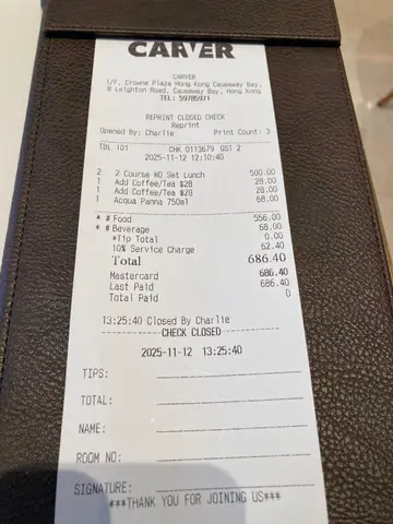 最近同朋友忙里偷得闲喺铜锣湾揾个地方慢慢食Lunch, 见餐厅做紧 Weekday 3-Course Set Lunch $275 一位, 望左openrice menu啱我哋心水, 就一于试下啦! :)餐厅环境方面好舒服, 坐得阔落, 职员又有礼貌, 上菜速度啱啱好,唔赶又唔慢, 感觉几chill