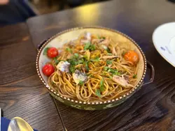 跟朋友黎到一间私房菜格局嘅葡国菜小店,气氛好温馨岩慢慢坐下倾下计,味道都好正宗。马介休口感顺滑,外脆内软,咸香味恰到好处。焗鳕鱼忌廉薯蓉焗到金黄酥脆,鳕鱼幼嫩,忌廉薯蓉香浓幼滑,薯香味好浓。 成个组合感觉好heavy但一啲都唔腻,味道丰富得黎好温和。鳕鱼炒菠菜 & 粟米面包粒睇落好前一道好相似,但风味完全唔同。 面包粒焗到好似批咁脆,同柔软嘅食材好夹,菠菜加左一丝清新感,同样焗鳕鱼呢款更有传统葡国菜风味。橄榄油沙丁鱼意粉简单美味,沙丁鱼嘅鲜味同橄榄油嘅香气结合得好好,意粉吸收咗所有味道,好香口。…查看更多