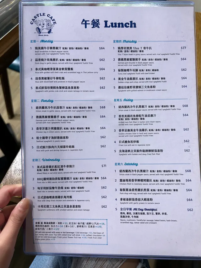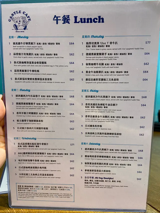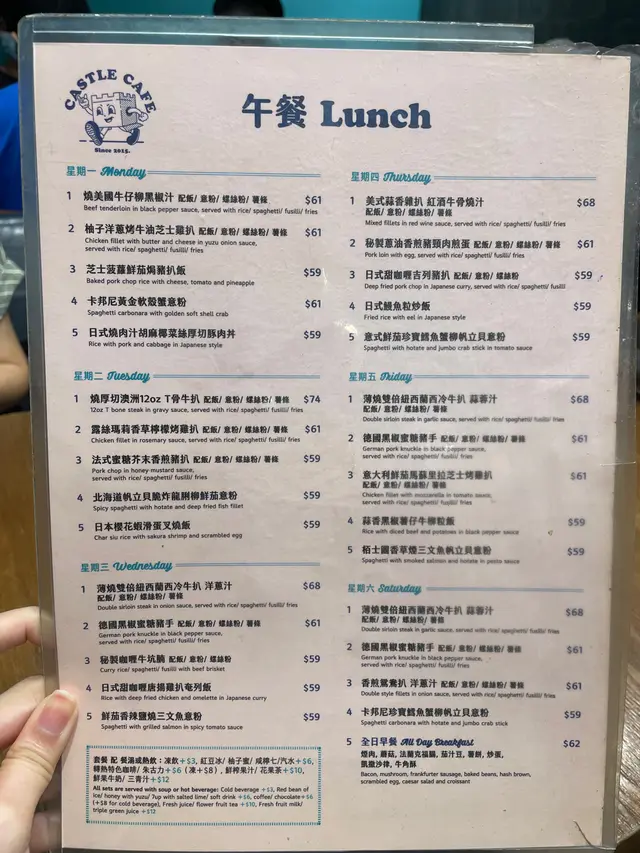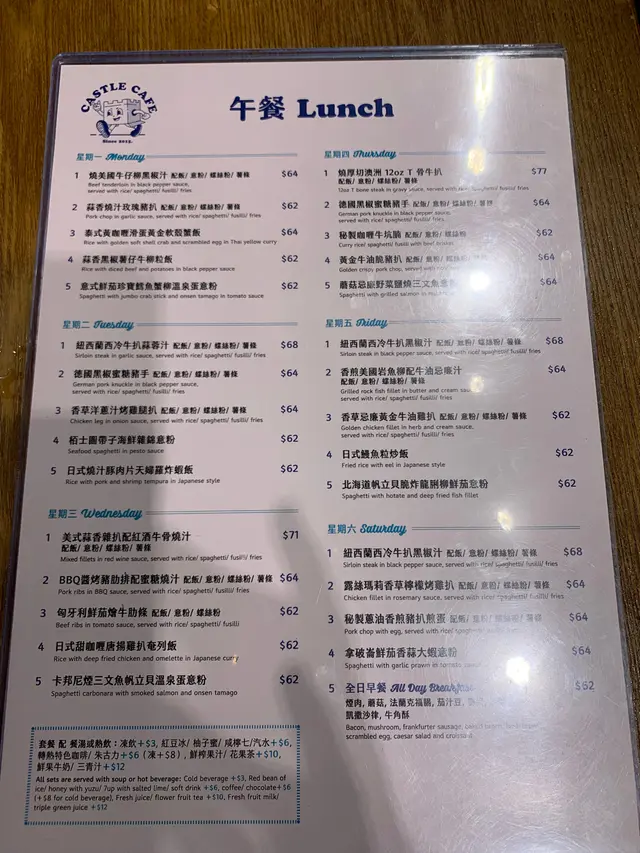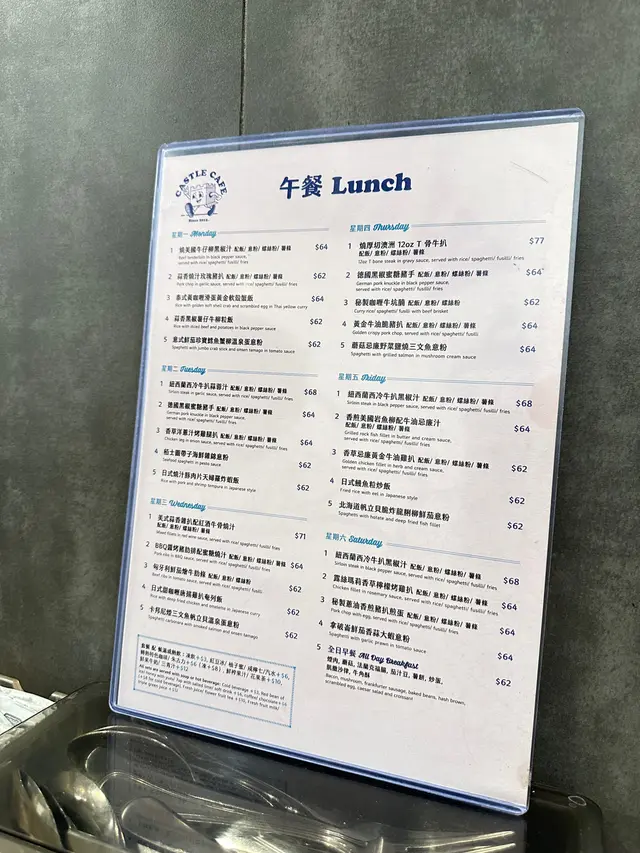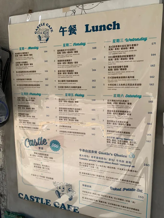 Castle Cafe (荔枝角) 网址: https://s.openrice.com/QrLS0KIO700 地址: 香港荔枝角青山道483香港紗廠工業大廈第六期地下D1號舖 电话: +852 27425366