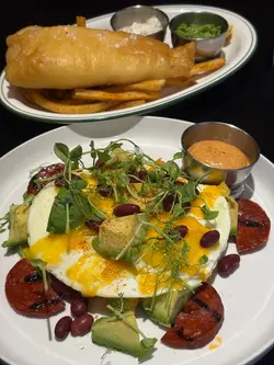 🍽️食物方面: 🍟Fish & Chips 💲200鱼劲咸 幼薯条加返分🥚Dirty Egg💲170Hea 唔值 成件事唔夹 几漏配牛油果 辣肉肠 细粒薯宝🥗Salad 🆓青苹果好酸 nuts几好食🍊Juice💲35本身拣西瓜 Staff落错单橙汁遮咗芒果同百香果嘅味🍋🟩Lime Soda🆓 正常发挥📷打卡方面:光线充足 用QR payment🔈环境方面: 有啲逼 好嘈 倾唔到计💬其他资讯:Catch. 📍鲗鱼涌海湾街17-21号海湾大厦地舖💰收+1