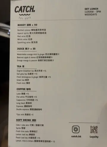 Catch. (鲗鱼涌) 网上订位享特别优惠并赚Rice Dollars 网址: https://s.openrice.com/QrLS00iaA00 地址: 香港鰂魚涌海灣街17-21號海灣大廈地舖 电话: +852 25683299