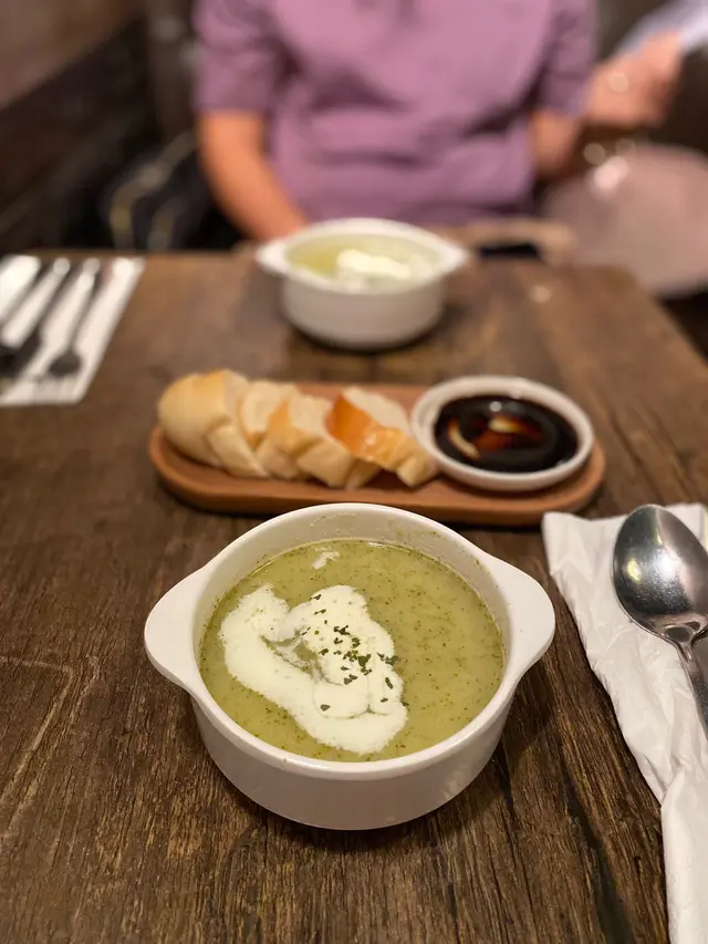兩個人打算速食 下午兩點 本身想搵間食下午茶 最後行過見到呢間又唔使等位 入去搵食試下啦佢仲有lunch menu揀 叫左一個C 餐一個E餐 牛肋肉意粉 同堆鰈魚炸薯條 有跟餐湯西蘭花忌廉湯 或者沙律 我地最後叫左湯 一開頭有個餐包 跟olive oil and vinegar 個包凍又無焗咁 不過唔高要求既就ok la個湯我覺得個味道不錯 但個質感唔ok 好水呀佢 個兩道main course好少少 個賣相幾好 但牛肋肉比較韌 炆得唔淋 個意粉好似無乜味咁 誠意欠奉;個鰈魚炸起熱辣辣 但啖啖都係油 薯條還好 佢配個茄汁同沙律醬 茄汁陣味比平時個d酸同埋稀 好想知係咩牌子 最後上埋個飲品 我地叫左凍檸茶走冰 但個茶底係勁黑蚊蚊 唔係燈光效果 味道就普通啦 唔係好紅茶既感覺 飲唔出係咩茶底最後埋單每人$80 呢個價錢唔知食左乜 唯一比較好既係佢既服務態度 每個staff都好有禮貌查看更多