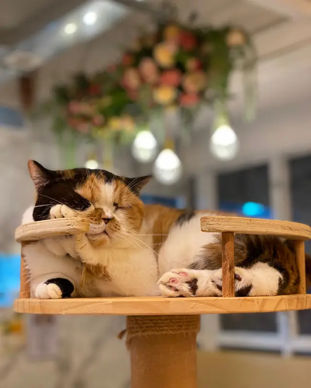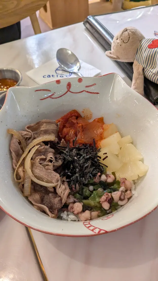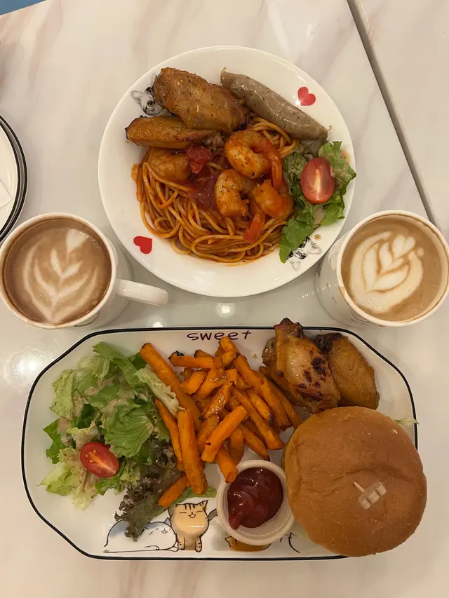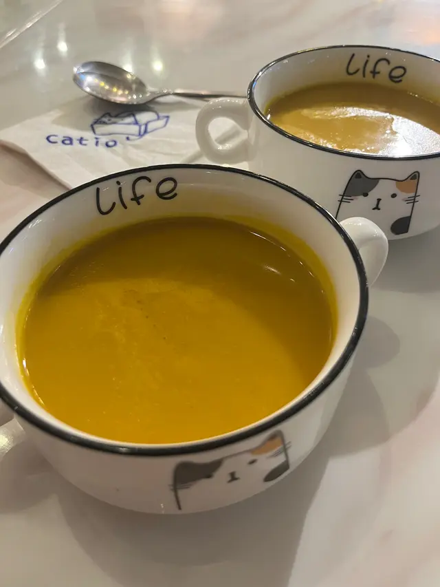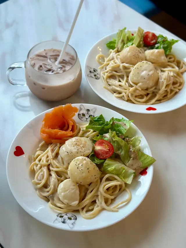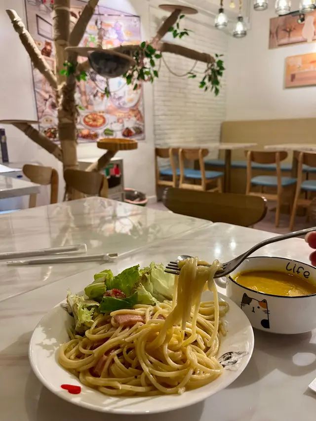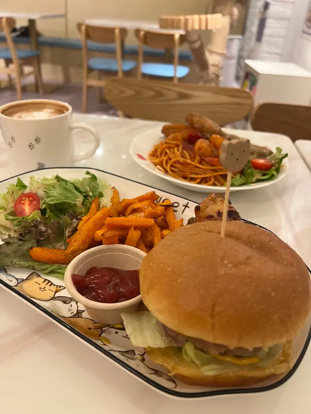 呢間寵物餐廳重點不是食物,而是好多不同的貓貓可以讓食客盡情打卡,同埋同啲貓貓一齊玩!老實講,對於沒有養慣寵物的人來說,在食飯的時候有啲貓貓走來走去,跳來跳去,甚至跳上枱或者跳上你嘅大髀,其實係會有啲唔習慣嘅;不過如果喜歡貓貓嘅朋友,相信會對呢間咖啡店寵愛有加,因為啲貓貓肥嘟嘟,其實都真係幾可愛。一入到餐廳已經見到啲小朋友同啲貓貓玩成一片,十分之開心,相信呢度都係一個可以帶俾好多小朋友歡樂嘅地方,環境雖然不是很大,但係佈置就好似一個貓貓遊樂場一樣,完全係一個貓貓嘅天地。可能因為都係俾啲愛貓之人共冶一羅的地方,所以感覺食物其實並不是主角,價錢亦會貴一點,不過食物質素都唔錯嘅。叫咗一個帶子蘆筍飯,真實版同餐牌相片完全係一模一樣,佩服!呢個飯配料擺放好精美,顏色好鮮艷,未食已經胃口大增,帶子都大大粒嘅,份量就不是很大,不過勝在好清新,味道都好味!配上一包紙包飲品,作為一個下午茶,消磨吓時間,我覺得絕對係冇得頂嘅!…查看更多