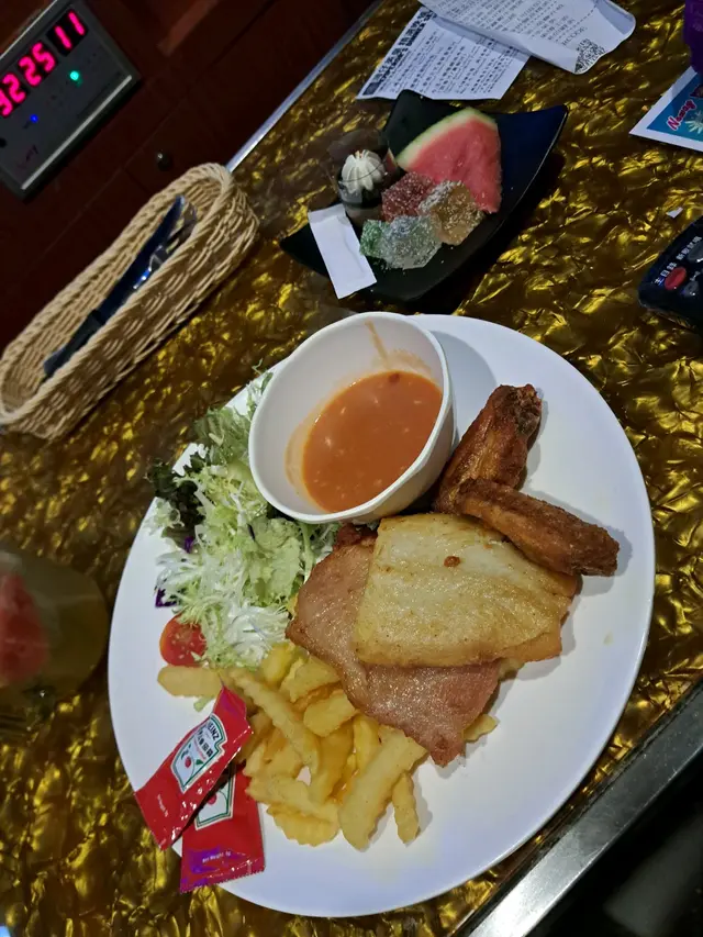 最近喺Neway英皇唱K,順便試咗佢哋嘅「灣仔英皇 精選晚餐」。加 $30 就可以揀主菜(例如香蒜海陸空/美國豬肋骨等),另有飯、薯條或意粉配埋,仲送甜品🍮。如果加 $60,仲可以食任火鍋,對唱K愛好者嚟講,真係幾抵食。講真,食物質素唔高,只屬一般,但份量夠,填肚無問題。食完仲可以落樓下大堂自助攞湯同雪糕,感覺有啲似學生時代嘅回憶。加埋唱歌環境,真係幾開心又唔貴,啱晒一班朋友聚舊。總括而言,如果你係為咗好味道嚟食飯,可能會失望;但如果你本身就打算唱K,順便食番餐,加 $30 至 $60 有得揀,CP值其實唔錯👍。唱到夜晚肚餓都唔怕,最緊要就係:夠平、夠方便!🎤🍴近喺Neway英皇唱K,順便試咗佢哋嘅「灣仔英皇 精選晚餐」。加 $30 就可以揀主菜(例如香蒜海陸空/美國豬肋骨等),另有飯、薯條或意粉配埋,仲送甜品🍮。如果加 $60,仲可以食任火鍋,對唱K愛好者嚟講,真係幾抵食。講真,食物質素唔高,只屬一般,但份量夠,填肚無問題。食完仲可以落樓下大堂自助攞湯同雪糕,感覺有啲似學生時代嘅回憶。加埋唱歌環境,真係幾開心又唔貴,啱晒一班朋友聚舊。總括而言,如果你係為咗好味道嚟食飯,可能會失望;但如果你本身就打算唱K,順便食番餐,加 $30 至 $60 有得揀,CP值其實唔錯👍。唱到夜晚肚餓都唔怕,最緊要就係:夠平、夠方便!🎤🍴…查看更多