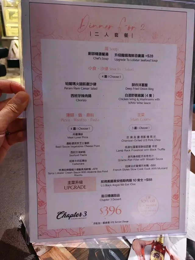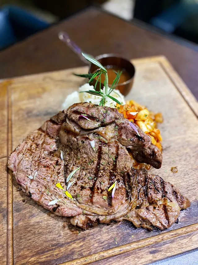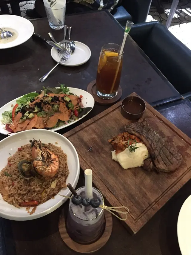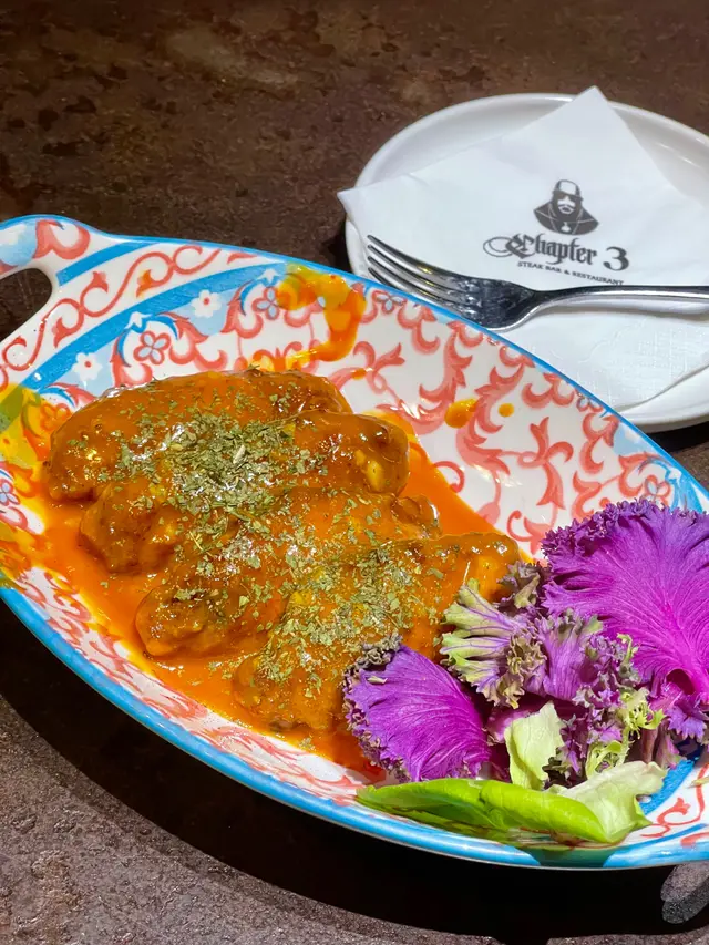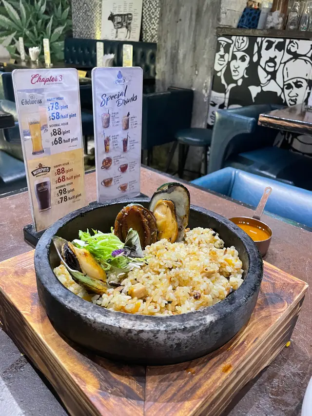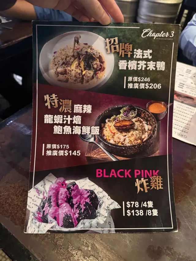 鬧市太子寧靜一角餐館之《 Chapter 3 Steak Bar & Restaurant》今日選擇同朋友繼續chill🙈,揀咗喺中心點太子嘅西式chill一chill嘅餐廳😊,Bar檯加上店內嘅裝飾都好靚👍🏻,美式拼盤(香煎牛仔腸&酥炸洋蔥圈&黃金芝士炸薯條&經典炸雞翼&黑松露炒野菌):五樣食物配搭四樣醬料,包括,青檸檬茄醬、黑松露醬 、黃芥辣醬及芥末醬。簡單一句抵食+份量夠。其中洋蔥圈係最好食,因為炸得好脆,滿滿嘅口感👍🏻。焗黑松露寶雲酥紐西蘭羊架:香料嘅味道同羊肉既騷味,融合一齊香氣四溢。 另外羊架肉質鮮嫩,咬落有彈性,呢道菜煮法係會落埋芥末醬,如果可以畀客人自己選擇點乜嘢醬去食,應該會更好食🤓。Blackpink雞翼4隻:店員誠意推介呢款打卡雞翼,雞翼外皮脆,肉質滑,外形雖然好似舊炭,但實情係加左墨魚汁,所以黑黑實實🙈,另外粉紅色既醬汁係火龍果加上乳酪汁混合既他他醬,酸酸甜甜配搭雞翼味道,非常味美。麻辣龍蝦汁鮑魚海鮮飯:首先係味覺享受,麻辣香味係一上枱就已經聞到🤤,龍蝦汁配搭鮑魚同青口,令到海鮮飯層次更昇華,整個飯香辣口感,非常誘人😋,飲品:榛子咖啡(熱) / 朱古力曲奇沙冰,榛子香味同咖啡苦味好夾,味道適中,配合牛奶泡沫,感覺不錯;朱古力曲奇沙冰飲落有罪惡感🥲,需朱古力味道十足,甜味亦適中,加上奶泡曲奇配撘,令到口感同味道有層次,值得一提呢杯野食用嘅杯好可愛😬,非常值得愛打卡既人士飲用。總結,店員態度良好,坐位舒適,時候係夜晚大約六點鐘未算好多人。但走時候大概八點,已經開始坐無虛席啦🫰🏻。…查看更多