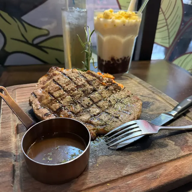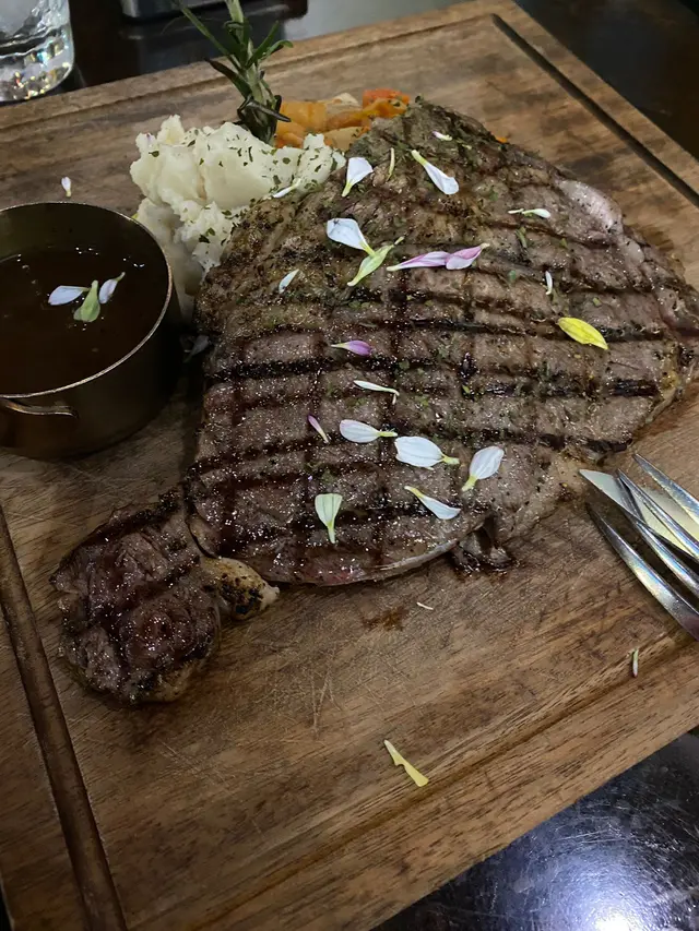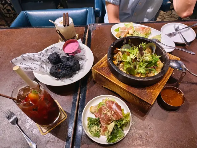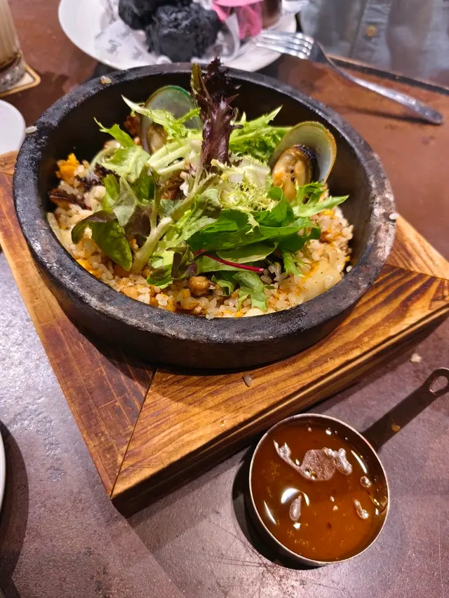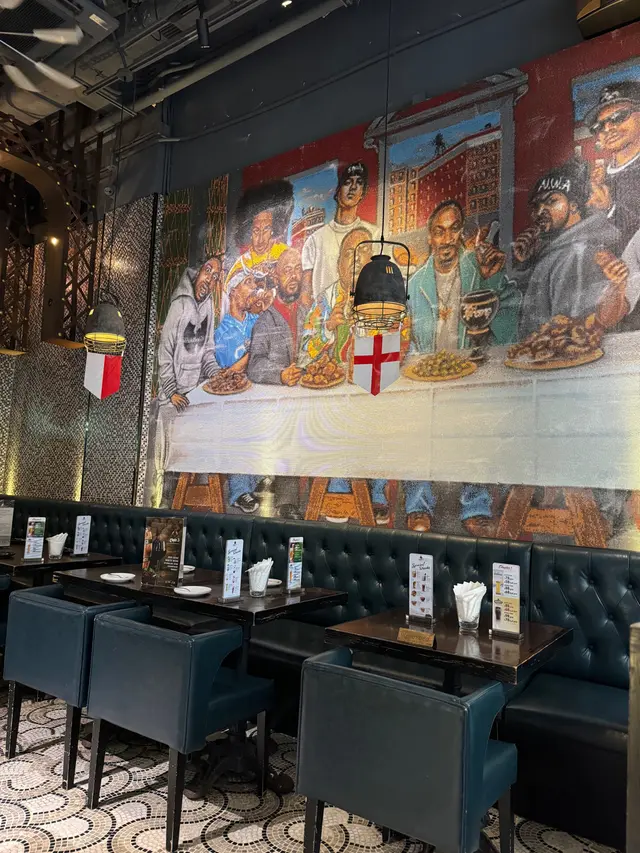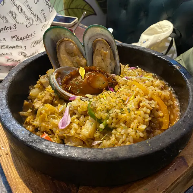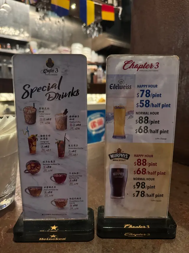 鬧市太子寧靜一角餐館之《 Chapter 3 Steak Bar & Restaurant》今日選擇同朋友繼續chill🙈,揀咗喺中心點太子嘅西式chill一chill嘅餐廳😊,Bar檯加上店內嘅裝飾都好靚👍🏻,美式拼盤(香煎牛仔腸&酥炸洋蔥圈&黃金芝士炸薯條&經典炸雞翼&黑松露炒野菌):五樣食物配搭四樣醬料,包括,青檸檬茄醬、黑松露醬 、黃芥辣醬及芥末醬。簡單一句抵食+份量夠。其中洋蔥圈係最好食,因為炸得好脆,滿滿嘅口感👍🏻。焗黑松露寶雲酥紐西蘭羊架:香料嘅味道同羊肉既騷味,融合一齊香氣四溢。 另外羊架肉質鮮嫩,咬落有彈性,呢道菜煮法係會落埋芥末醬,如果可以畀客人自己選擇點乜嘢醬去食,應該會更好食🤓。Blackpink雞翼4隻:店員誠意推介呢款打卡雞翼,雞翼外皮脆,肉質滑,外形雖然好似舊炭,但實情係加左墨魚汁,所以黑黑實實🙈,另外粉紅色既醬汁係火龍果加上乳酪汁混合既他他醬,酸酸甜甜配搭雞翼味道,非常味美。麻辣龍蝦汁鮑魚海鮮飯:首先係味覺享受,麻辣香味係一上枱就已經聞到🤤,龍蝦汁配搭鮑魚同青口,令到海鮮飯層次更昇華,整個飯香辣口感,非常誘人😋,飲品:榛子咖啡(熱) / 朱古力曲奇沙冰,榛子香味同咖啡苦味好夾,味道適中,配合牛奶泡沫,感覺不錯;朱古力曲奇沙冰飲落有罪惡感🥲,需朱古力味道十足,甜味亦適中,加上奶泡曲奇配撘,令到口感同味道有層次,值得一提呢杯野食用嘅杯好可愛😬,非常值得愛打卡既人士飲用。總結,店員態度良好,坐位舒適,時候係夜晚大約六點鐘未算好多人。但走時候大概八點,已經開始坐無虛席啦🫰🏻。…查看更多
