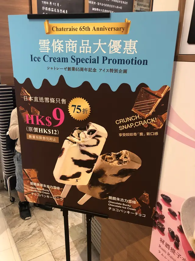 同朋友剛剛係樂天皇朝食完晚飯,諗住慢慢行番過Popcorn果邊搭地鐵返屋企,經過Chateraise見倒好多人排隊買緊雪條,原來係做緊日本直送雪條大優惠,我緊唔會放過食好野嘅機會啦😋😋我買左脆脆朱古力味,雪條其實係雪糕加脆脆朱古力,朱古力味好濃郁,雪糕好cremy好滑口,脆脆朱古力唔太甜,原本$12而家做緊優惠$9支,真係超值好味,見倒鋪頭仲有蛋糕🥧🧁、大豆福餅售賣,我都忍唔住買左幾件🤣所以話有時呢d優惠,其實可以吸引客戶幫襯買其他產品😆查看更多