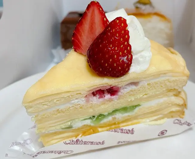 一直以為chateraise同A-1係美心集團,但最近見到間舖登告示先知原來係日本人開嘅日本公司,非美心集團🤣👓宇治抹茶千層蛋糕 $38面頭係一層類似抹茶凝漿,無咩味但因沈上少許糖粉所以帶點甜味;層數好多約有18層,餅皮薄又完全唔鞋會刮口,皮之間夾雜着抹茶忌廉,濃抹茶但又唔會濃到好苦澀令人反感,聲稱選用咗北海道忌廉所以都真係幾香滑,蛋糕最中間有一層北海道紅豆粒,分量唔算好多不過剛好已足夠,太多的話會搶去抹茶味並令蛋糕變得太甜;底部係黑糖漿海綿蛋糕,但食落吾太甜特別出黑糖味, 蛋糕底吾太厚但佢嘅存在添加左口感,因為平時好少見千層蛋糕有層蛋糕底。整件蛋糕重抹茶味同時又有紅豆唔會甘單調,係個好好嘅配搭食晒成件都唔覺得漏;🐷小編覺得佢比較優勝之處在於整件蛋糕好有日本甜品精緻的感覺,蛋糕比較挺身實正但又唔會過於硬實,層數分明cream吾會一pat野令蛋糕塌哂。評分:8/10👓朱古力千層蛋糕 $38面層係一塊凝固左嘅薄朱古力,而層之間係朱古力忌廉,香朱古力味但稍為過甜,食落有陣死甜嘅朱古力味;睇menu先知朱古力海綿蛋糕上面有少少杏仁粒因為食落唔太明顯。整體係件就甘偏甜嘅朱古力蛋糕。 評分:6.5/10👓千層蛋糕 $35面頭食落似一層焦糖面,層之間係普通嘅原味忌廉,但食得出好重雲呢拿味;底層係雲呢拿海綿蛋糕;整體蛋糕比較似牛奶味,都偏甜身但有冇朱古力咁甜,係好食不過稍為漏。評分:7.5/10查看更多