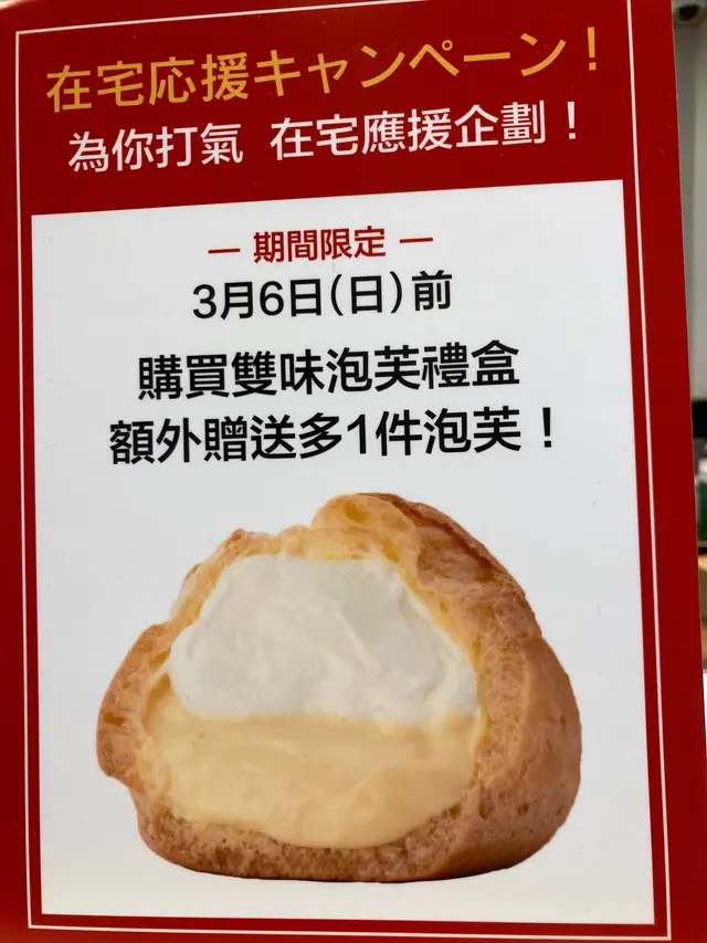 今日下午經過V City,看到這間日式麵包店竟然有買二送一的泡芙優惠,但要買夠六個都可享有,加上最近看到新作品,網上評論皆是讚賞,所以買了六個泡芙和一個焦糖瑞士卷作下午茶。法式焦糖瑞士卷🍰(原味)$26其實是瑞士卷塗上軟滑吉士醬,面層再加上燒至香脆的焦糖,帶來軟綿口感和焦甜的味道,這個甜點定價不高,味道一流,是下午茶好選擇!以下是所有泡芙口味:原味是吉士及忌廉🥠$14一切開可以看到半滿的醬,外皮軟軟酥酥,內餡綿滑,一口咬下時的爆漿口感,總是讓人欲罷不能,不過這不是最好吃的款式!焦糖🥠$14這才是最好吃,因為焦糖很香,甜味很突出,怎可能不好吃呢😚抹茶🥠$14有茶香,但不夠突出!朱古力🥠$14朱古力味道夠濃!查看更多
