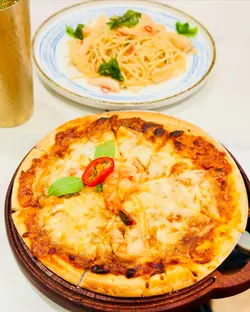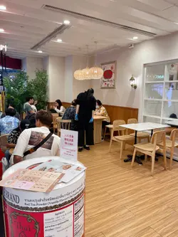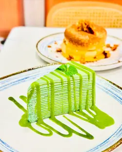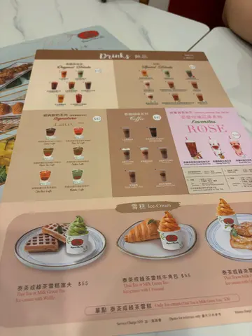 唔系讲笑,以前去亲泰国都会饮番杯,前几年香港仲开左分店!星期六行街经过沙田新城市广场见到佢竟然有CAFÉ,有午餐、甜品,标志性红色为主调,加上木系枱,菱格地面,够哂Clssic!🍰泰茶梳乎厘班戟 $88全餐饭最期待呢个甜品,即叫即做,望落好松软,上面淋左忌廉泰式奶茶酱,睇得又食得!梳乎厘湿润几软棉棉,加上浓浓幼茶香,一定要加埋佢个焦糖脆脆一齐食!🍰牛乳忌廉蛋糕 $45 本身其实好想叫个冰,但又怕食唔哂。但食完梳乎厘又有D意犹未尽,最后都叫多个蛋糕share食!佢入口蛋糕好软棉棉,牛乳忌廉做得比较实在,但味道好浓厚,我觉得牛乳外仲有芝士咁,唔算太腻!🍚泰式海南鸡饭 $88经典海南鸡饭,鸡肉都几多件,食落嫩滑,鸡皮几爽滑。秘制酸辣酱除左点鸡吃之外,用黎捞个油饭都一流,超开胃!🍕泰式冬荫海鲜薄饼 $98第一次见到呢个口味,二话不说拣左!Pizza 唔算好大,自己/同朋友两个Share食就啱啱好!即叫即焗,PIZZA饼底薄脆,唔会太厚身,上面有冬荫功酱汁,酸酸甜带少少辣,好开胃。每块都有海量芝士,加埋D海鲜好似虾、鱿鱼,口感几好,食几块都唔会腻。饮品叫左杯平时未饮过嘅泰国青柠荔枝蜜玫瑰花茶,我见佢写住排毒泻茶几特别。甜度叫左少甜,饮过有青柠香几Refreshing!废事食咁多奶茶野,另一杯饮左就泰国鲜奶抹茶,味道同预期一样,够滑身,有抹茶!总结:价钱正常,最方便系一间可以食齐正餐同甜品!泰茶梳乎厘班戟 有惊喜,下次会想再试埋个bingsu!…查看更多