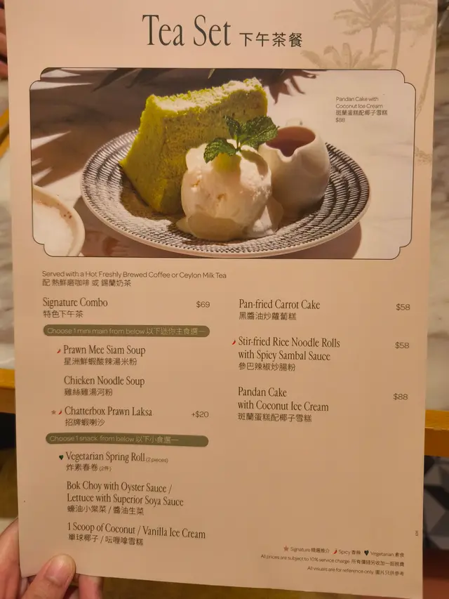 今天平日和老公来到K11 Musea逛街,本身想吃这间餐厅的午餐,可惜下午3点来到的时候,餐厅已换了下午茶餐牌,至于午餐则暂停供应,我们唯有吃下午茶的套餐,虽然选择没有午市那么吸引,幸好食物味道都不错。招牌虾喇沙:喇沙汤的颜色和其他餐厅有些不同,至于味道则十分浓郁,微微香辣,而且配料都算多,有虾、鱼片和鸡蛋等等,虽然已经规定是配米线,但是米线都相当入味,挺惹味开胃。黑酱油炒萝卜糕:其他下午茶选择不太吸引,于是便随便点了这款,没想到味道有惊喜,萝卜糕细细粒炒得挺有镬气,黑酱油味道咸咸的,配上萝卜糕都挺好吃。咸蛋黄鸡翼:鸡翼连鸡翼尖,可惜鸡翼应该不是即炸,只是微暖而已,咸蛋黄的味道则正正常常,下午茶仍然需要加配88蚊有点昂贵。炸素春卷:春卷是即叫即炸,外皮十分香脆可口,而且油而不腻,至于内里的蔬菜亦挺好吃,味道相当不错。热咖啡和苹果茶:热咖啡稍为苦涩了一些,苹果茶带有淡淡的苹果香气,几特别的。价钱方面,喇沙$89,炒萝卜糕$58,咸蛋黄鸡翼$88,餐厅设有加一服务费,最后两人总共 $258.5。总结来说,今次的下午茶味道相当不错,如果下午茶时段都可以提供午餐便更好了。…查看更多