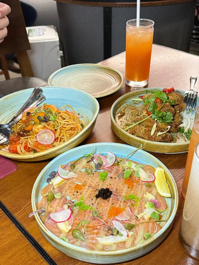 Chef’s Cut安排我們的坐位,剛好是廚房位置,透明玻璃可以讓食客看到廚師料理過程,令整個體驗更加豐富。 🥗 前菜 & 小食 Salmon and Abalone Carpaccio 三文魚油脂豐富,鮑魚彈牙,加上酸甜的醬汁,非常開胃 Tom Yum Chicken Wings 西餐 x 泰式風味的 fusion 嘗試,香茅和檸檬香氣突出,外脆里嫩,加上冬陰酸辣衝擊,又幾有特色 🍝 主菜 Pasta "Putanesca" 大蝦非常彈牙,橄欖和番茄的平衡不錯,整個味道非常突出。 Scallop Ink Spaghetti 帶子煎得完美,焦香內嫩,墨魚汁醬非常濃郁 麵條煙韌掛汁。 Dry Aged US Pork Loin 熟成讓豬肉更柔嫩多汁,值得一提的是旁邊的配菜都非常美味 Jay's Smoked US Beef Brisket 低溫慢熏的肉質纖維分明,而且非常嫩滑,肉味香濃,十分推薦 飲品及蛋糕🍰 Fat Washed Old Fashioned 創意調酒,牛排油脂的煙薰感融入威士忌,加上橙酒,味道特別 Cowboy Cheese Cake 芝士蛋糕質地綿密,拖肥雪糕香滑,加上脆餅和爆谷做點綴,口感非常豐富。…查看更多