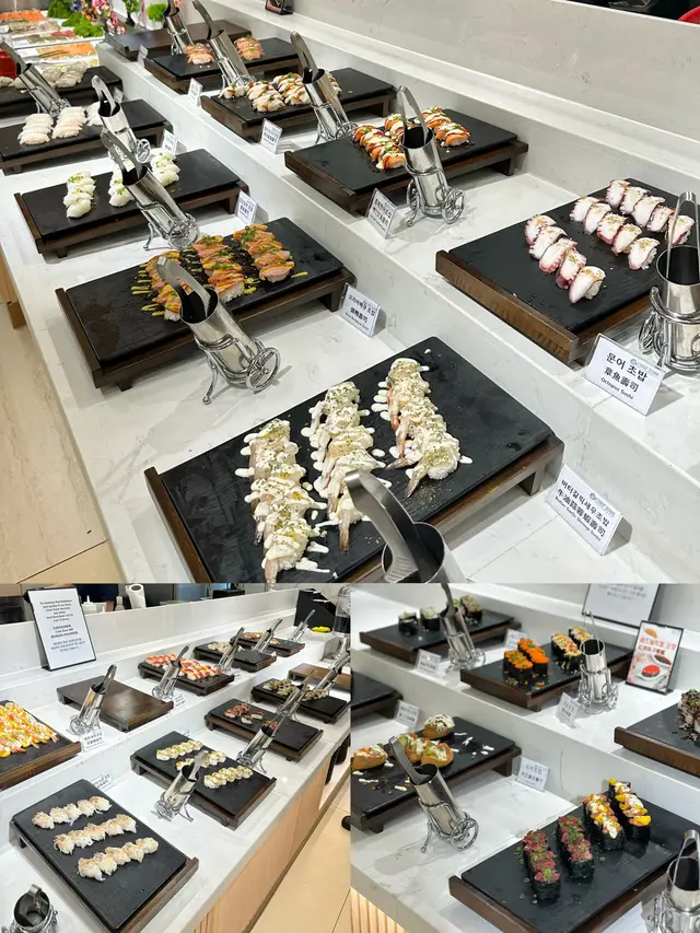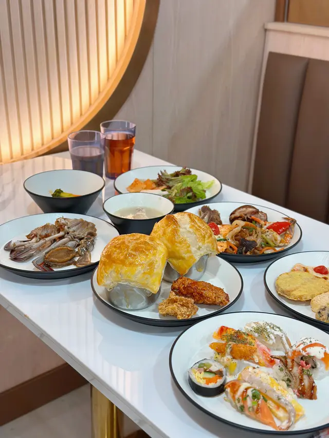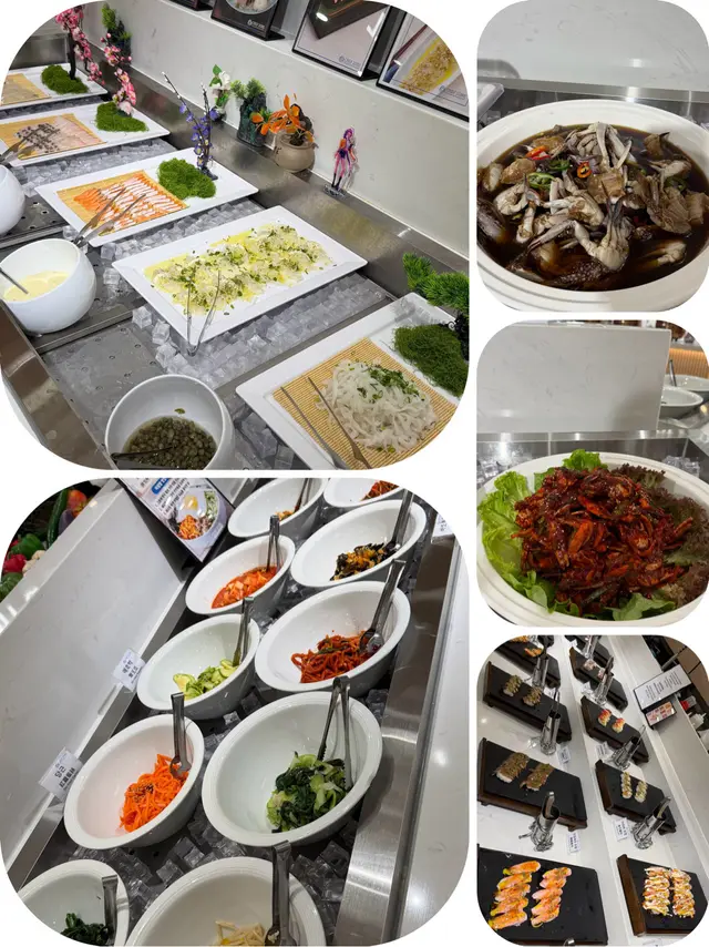 酒店自助餐、日式放題食得多,唔知大家有冇食過韓式自助餐呢?今次同大家介紹,呢間係全港首間韓國自助餐🇰🇷,90%食材及用料來自韓國,超過150款地道韓國美食❣️由韓籍廚師主理,堅持傳統工藝,環境寬敞舒適。食物款式超豐富,平時食得多日本刺身,韓式刺身都係第一次,呢度有滋補鱸魚、海上貴族真鯛、巨型石斑魚、深海鯛魚、比目魚卡爾帕喬、魷魚絲。我覺得比目魚卡爾帕喬都幾開胃,加咗檸檬、洋蔥絲,味道酸酸地。魷魚絲遠睇河粉或冷烏冬,原來係魷魚絲,好得意,食落唔會韌。鍾意食韓式拌飯嘅話,超過10款拌菜小食,可因個人喜好隨意添加小菜。更有韓國直送醬油蟹,蟹肉都幾鮮甜呀。醬油蝦都幾大隻,都好入味呀!食得辣嘅話,可以試下辣味蟹啦。壽司種類好豐富,細細舊飯都幾方便,食材都係以韓式食物為主。有一個corner係即叫即整,我試咗生牛肉粟米,用雪糕筒裝住,都幾特意,有啲似生牛肉他他嘅口感。熟食方面都好豐富,包括炸物、串燒、炸雞、人蔘雞湯、鮑魚粥、酥皮濃湯、魚板串等等。飲返啖人蔘雞湯暖下個胃,人蔘味都幾濃下。最有驚喜係鮑魚粥,口感好似baby food嘅口感,啲粥煲得好綿密,香甜易入口,都幾啱小朋友食呀!甜品方面都幾多選擇,淨係冬甩都有好多隻味!有韓式軟雪糕,估唔到仲有Gelato,有士多啤梨同抹茶味,成個雪櫃都係韓式雪條!!!咁多隻味,超滿足呀!食後感想,呢個價錢幾抵食,食物種類真係幾多下,食完真係捧住個肚走人,而且都坐得幾舒服,都幾啱一班朋友聚會,性價比認真唔錯!…查看更多