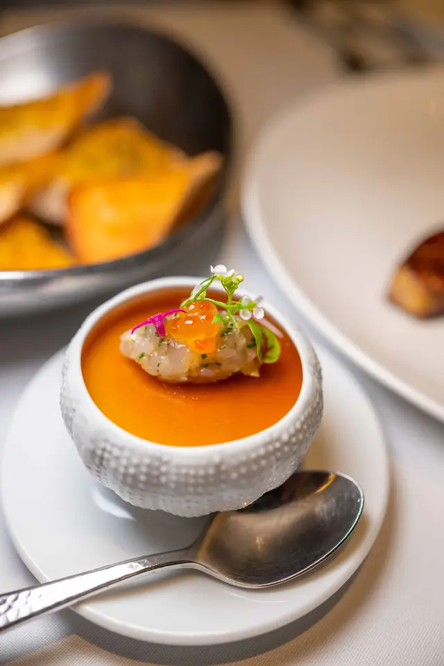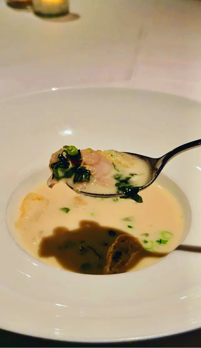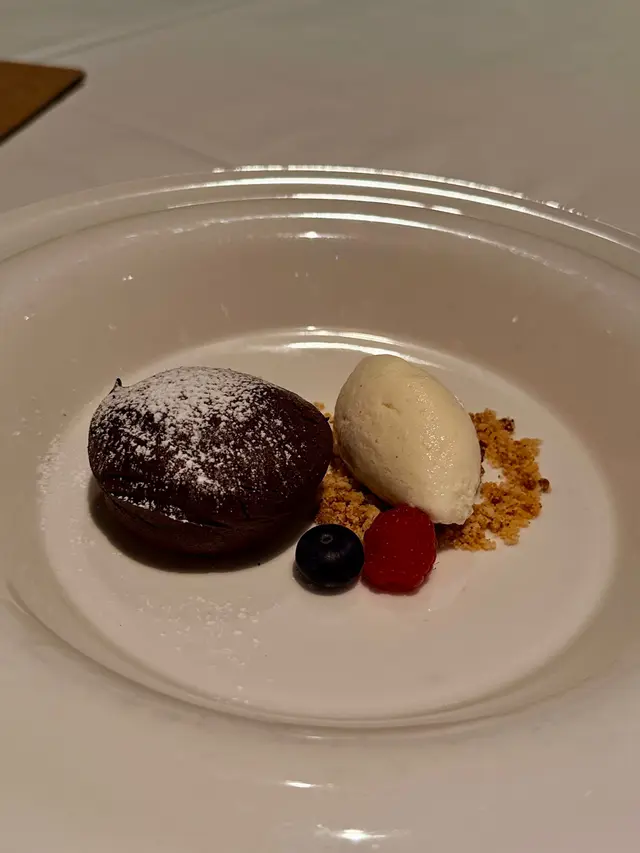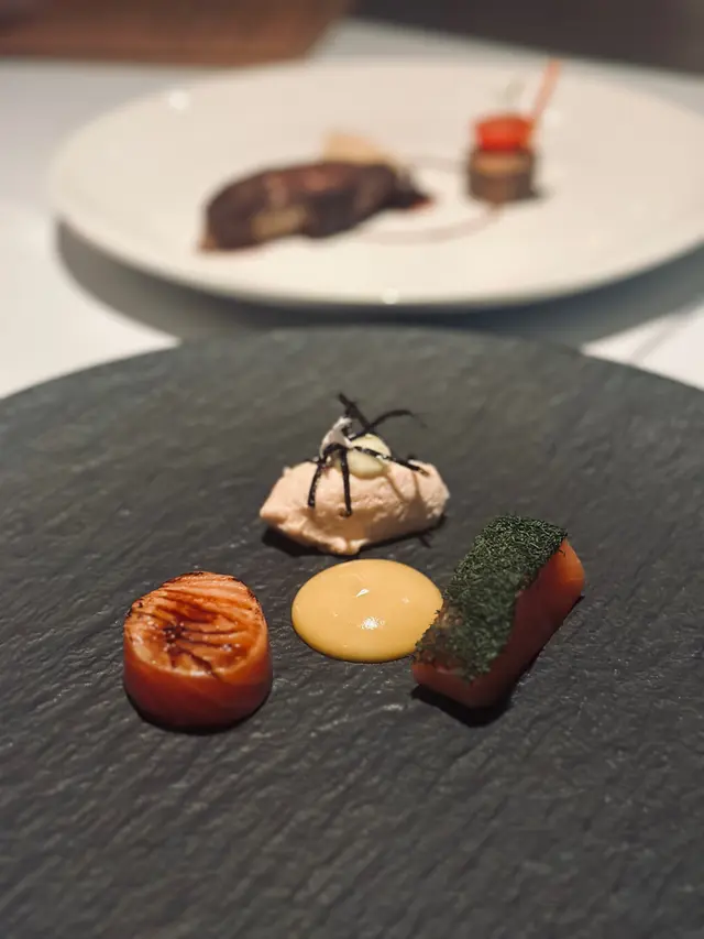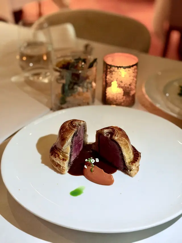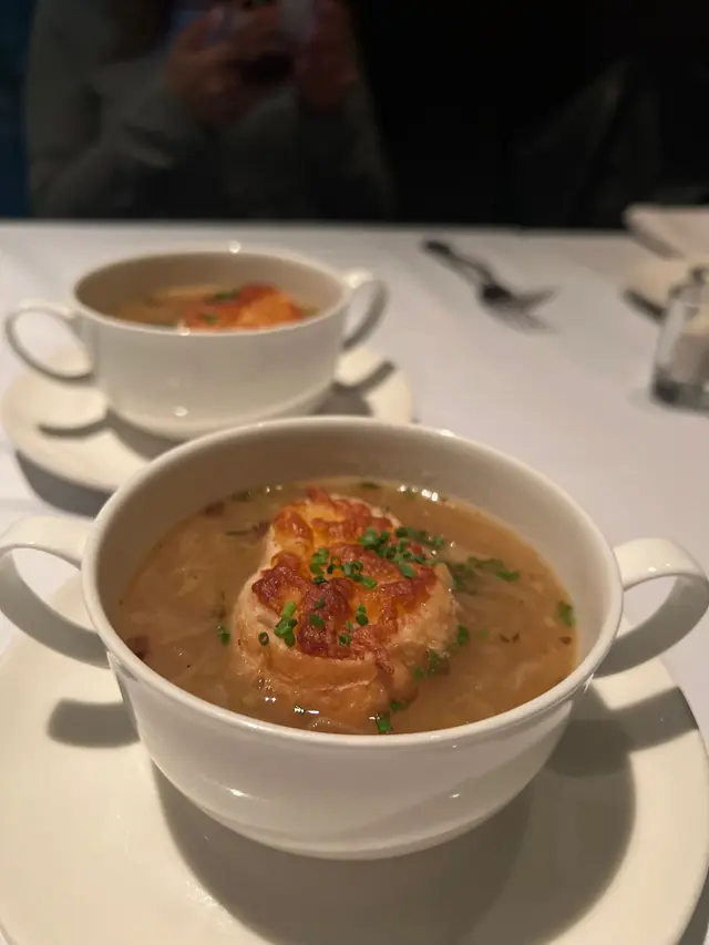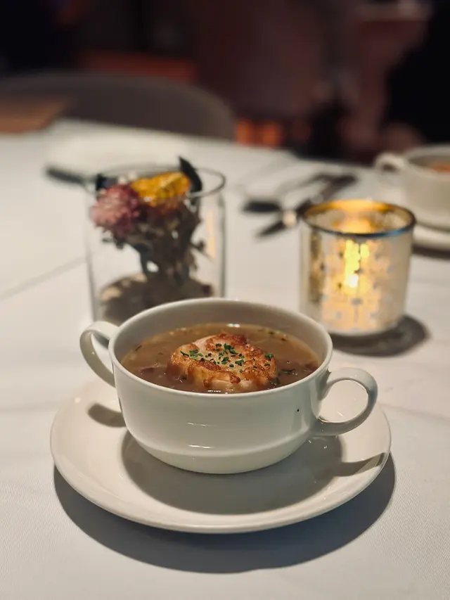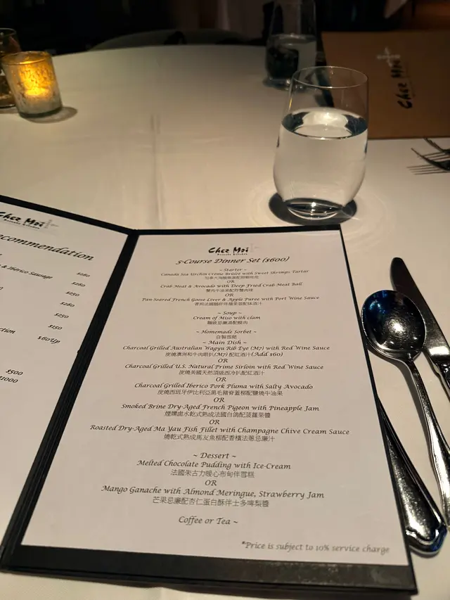 今夜與老友相約到Chez Moi晚餐,一進餐廳已看見低調奢華的裝潢配上柔和燈光,播着浪漫法國歌,未開餐已被這份雅致氛圍所打動。法國餐最講究擺盤,這家完全做到,每道菜式真係精緻到不得了。5-Course Dinner Set ($600位)🌟首先蒜香撲鼻的法包揭開序幕,外表酥脆內部柔軟。接着是頭盤,🌟自家製三文魚三食,三文魚慕絲,絲般柔滑,魚味濃郁火焰三文魚,煙三文魚,極度鮮嫩,煙熏味濃厚。🌟香煎北海道帶子配海膽蓉、香茅帶子泡沫。帶子焦香彈牙,海膽蓉甘香,香茅帶子泡沫口感以忌廉奶油 ,細緻順滑,頂級好味道。接著到湯品🌟經典法式洋蔥湯整碗盛載滿滿洋蔥絲,濃郁的洋蔥甜味配上法包和融化的芝士,是法國菜的comfort food代表。主菜前來一道🌟自製雪葩清清口,清新檸檬味,酸酸甜甜,讓人以最佳狀態迎接重頭戲。🌟焗澳洲威靈頓羊柳則以酥皮包裹,金黃酥脆的外層下藏著鮮嫩的羊柳。羊肉本身的臊香風味被完美保留,配上醬汁與甘筍醬,味覺十分滿足。🌟法式紙包焗原條鱸魚,整條鱸魚連同香草、檸檬片、白酒等配料密封於烘焙紙中烘熟,保留了魚的水分和鮮味,同時讓各種配料香氣充分融入魚肉,食落非常嫩滑鮮甜。到甜品上場😋🍨麵包布甸配雲尼拿雪糕暖暖的麵包布甸,口感綿密,帶有淡淡肉桂與焦糖香甜,搭配雲呢拿雪糕,冷熱交織的溫度帶來驚喜。🍧雜莓撻配雲呢拿栗子慕絲這款擺盤精緻優雅的法式甜品,視覺和味覺都令人驚鹽,牛油香的撻皮承載着色彩鮮艷的雜莓,每口都酸甜滋味,配上輕盈綿滑雲呢拿栗子慕絲,展現了甜點師傅的精湛手藝。最後coffee or tea 完結這餐法式五道菜,超滿足🥰…查看更多