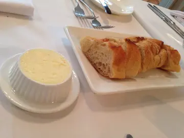 慕名已久的马赛海鲜汤,果然名不虚传,三种鱼类均来自法国,是不一样的品种,大厨根据鱼的特质在不同时间加进汤窝烹调,入口鲜嫩鱼味香,除了有鱼外,亦加进数只青口及一只大虾,同样新鲜肉质弹牙,最出色当然是汤底,呈深橙带啡色之海鲜汤更是真材实料,味浓醇厚,鲜香朴鼻,余韵悠长,好喝至停不了,幸好可以添加,心水推荐!"rouille" dip sauce and garlic croutons客人亦可随意蘸以甜芥茉吃海鲜,加芝士于汤底及伴以香脆蒜香面包片同吃,非常体贴。看我们如猫咪般洗碟全清,一滴不留!Lavender flower cream brulee :) 甜点是有薰衣草香的法式炖蛋,顶层加糖烧至微焦,是指定动作,确实又增添层次,香脆带硬跟炖蛋之棉滑成强烈的对比,完美的结束。三道菜晚餐,价钱不过份,味道一流,环境服务无失望,夫复何求。…查看更多