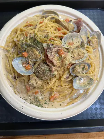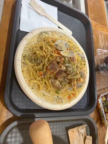 最近呢间意粉系社交平台爆红,想将佢同下便𠮶一间亦都好红嘅意粉比较,嗌𠮶阵个职员话要等半个钟,但系可以留低个电话到咗会call你,呢一间意粉店藏身喺8楼嘅food Court,意粉超级大份,感觉女仔两个人share都可以食得饱,仲要有海鲜+酒味价钱都只系$57!今次试咗嘅系白酒牛油汁蚬意粉($57)攞上手热辣辣,摆盘好靓,配料睇上嚟好多好似成座山咁,蚬肉都食到满满嘅白酒香,偏重奶味,好Creamy,唔会漏但系超级浓味,上面嘅香草令成件事嘅配搭更上一层楼,烟肉整到微微焦脆劲邪恶,意粉嘅质感烟烟韧韧几有咬口,咸香十足,每一条意粉都挂满晒酱汁,酱汁好浓郁劲惹味,每一啖都系满足嘅幸福感,蚬肉好鲜甜,亦都好新鲜,呢一个份量、质素、价钱真系超级出色同埋超级有惊喜!所有嚟过西九龙中心嘅人唔试一定会后悔!