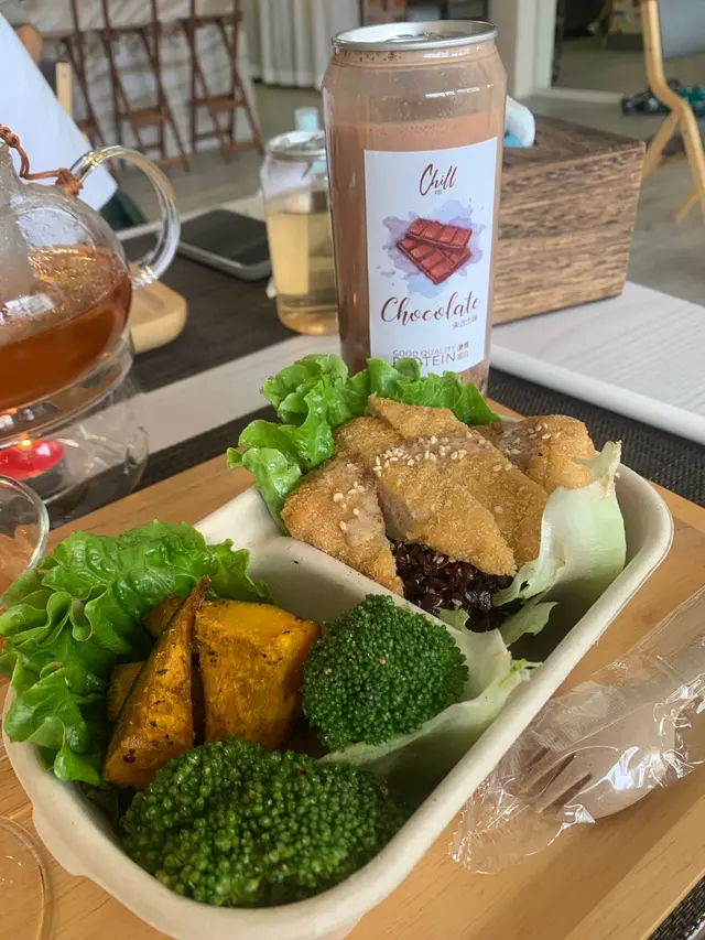 呢日喺佐敦附近工作,中午搵食之際,見到有職員派傳單話係健康餐,亦有素食之選,呢日係初一,所以就食返個素食,職員話原來佐敦呢度係新開嘅。跟住職員入去,一打開門見到大大個風景位,就坐左埋佢,好舒服呀,工作中途真心需要減壓。 餐係蛋白飲配正餐,仲有茶飲,素食選擇都好多,亦都強調係健康,美味,飽肚,每餐只有300卡。 我叫左素魚柳,可配紅米或蕎麥麵,我就揀左紅米飯。 一開始先上茶飲,我揀左熱嘅紅棗桂圓茶,大大壼有排飲,唔會太甜又養生,好啱女仔飲呀。 之後上蛋白飲,我揀左藍莓,裡邊仲有奇亞籽非常健康,成日聽人講蛋白飲唔好味,但加左藍莓就唔會啦,好好味,藍莓味好fresh,職員話飲完先食更好吸收。而且雖然係樽裝,職員話係新鮮自家製架。 到正餐啦,賣相好靚,色彩繽紛,素魚柳很有驚喜,唔止似真嘅魚柳之外,仲好好味,唔會假,係天然成份做的,非常有驚喜。仲有車厘茄,西蘭花同南瓜,樣樣都好新鮮,紅米飯有驚喜,唔會硬,口感啱啱好。 呢度環境好舒服,食健康餐心情會好放鬆,可惜話咁快午飯時間又結束,又係時候要努力工作了。…查看更多