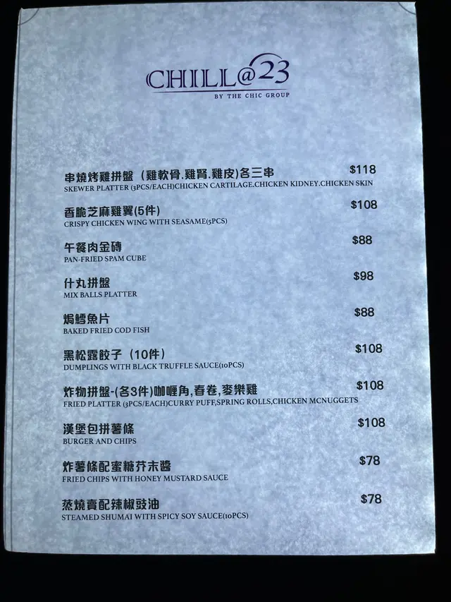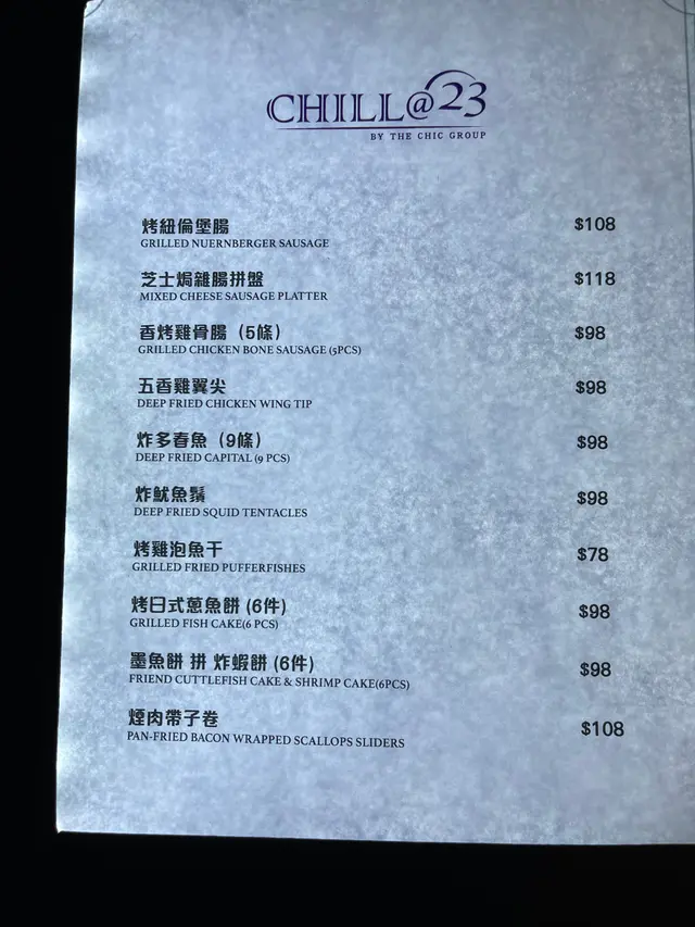 Chill@23 (铜锣湾) 网址: https://s.openrice.com/QrLS0DliB00 地址: 香港銅鑼灣軒尼詩道525號澳門逸園中心23樓 电话: +852 81181168