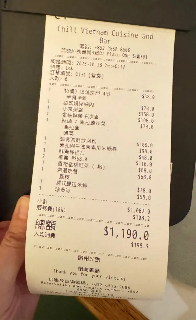 Chill Vietnam Cuisine and Bar (荔枝角) 网上订位即赚Rice Dollars 网址: https://s.openrice.com/QrLS0Po4C00 地址: 香港荔枝角長義街9號D2 Place ONE 3樓301號舖 电话: +852 28588606