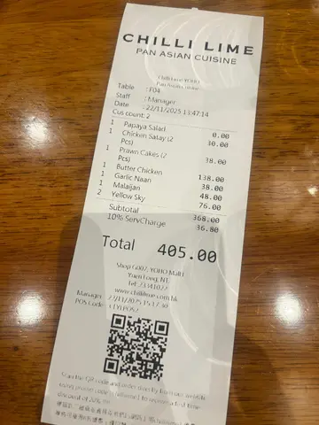 平日放假,同狗狗出街食饭。以前去过将军澳Chilli Lime,食物啱口味但欠特色,途经Yoho Mall分店,见布置优雅带古典风,又有室外用餐区,主人可以同宠物坐低开餐。平日午市套餐定价$100-120,价钱视乎主菜而定。套餐包前菜(3选1)、主菜同饮品,跟餐+$30可享用甜品(芒果糯米饭/香蕉煎饼)。泰式青木瓜咸蛋沙律:前菜;配料多而「特别」,除咗一般常见的青木瓜、甘笋、车厘茄同花生外,佢仲加埋虾、鱿鱼、咸蛋同粟米,食材丰富、颜色吸引但偏离正宗;味道唔系传统泰式青木瓜沙律的重酸、重辣,而系异常温和,如果唔执著系咪正宗泰国口味,其实佢相当适合香港人印式芝士烩菠菜连烤饼及印度黄饭:主菜;系餐厅特别提供的选项;午市套餐冇素食主菜,我同带位的侍应了解系咪可以提供素食选择,佢好快回覆可以俾我喺餐牌的蔬菜类中拣选一个项目,而套餐就跟主菜的正价收费,+$10包烤饼同印度黄饭;欣赏餐厅有弹性处理食客的特别饮食要求,而餐牌中亦有唔少素食选择印式芝士烩菠菜:浓稠,同烤饼、黄饭好夹;菠菜蓉有淡淡香料味;芝士比外面食到的大粒,佢无论味道定质感都好似硬豆腐;虽然只系一细碗,但绝对够食,食完亦唔漏;呢个素食主菜系餐厅的推荐项目,值得一试烤饼(正宗):菜名中的「正宗」系指原味;烤饼带油份,有2件,食晒一定饱;fluffy,口感烟韧,几好食印度黄饭:饭量唔多,~100克;钟意印度米干身同低碳,食落清爽,最啱夹埋咖喱/其他多酱汁的菜式一齐食热咖啡:点餐后好快送到;细杯,似double shot espresso,唔肯定系咪espresso(侍应冇俾奶,只俾黄糖);饮落好苦,麻麻哋,最后要咗奶,不过整体都系唔好饮狗狗食评🐕📝:食物🍽️:妈妈带定食物俾我,不过,原来我都分到嘢食,包括青木瓜沙律入面的大虾、鱿鱼、粟米同车厘茄;见到妈妈剪虾虾时,我都感觉到佢好新鲜、弹牙;平时我冇得食青木瓜沙律,因为太重口味,但呢度的青木瓜汁水唔多、唔辣,我都食得呀环境🌳🪑:户外座位范围好大,仲连住商场的宠物室外友善空间,有放狗便便的垃圾桶,又有宠物相关的设计,行前啲仲有我同类(狗狗)的星光大道添;用餐区有帐蓬,餐台椅够大张,台面高度又适合用餐,环境好啱我嚟chill下宠物友善度💖:宠物设施就冇喇,而侍应对我都唔热情,不过,侍应听妈妈话要带埋我食嘢,都系欢迎既;侍应上餐时,特别问妈妈我系咪「ok」(应该怕我袭击佢),咁样问一下系好正确架,起码佢有意识上餐时可能要小心啲。当然我要澄清,我攻击的对象从来都只系食物㗎咋~…查看更多
