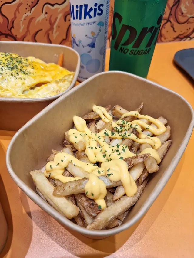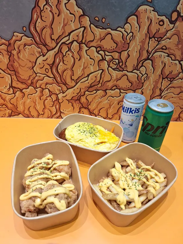 原來大埔超級城嘅韓式炸雞店做緊優惠即刻過去試下 原本以為外賣店未必太好食點知有驚喜 除咗炸雞連蓋飯都好味喎點咗韓式芝士無骨炸雞 無骨真係好方便大人小朋友都啱食 外脆內軟 一咬落去 好juicy薯條仲升級咗芝士口味 好食到停唔到口估唔到佢哋嘅蓋飯都係好吸引 漢堡好厚身 同滑蛋配合得啱啱好最緊要地點真係好方便 喺大埔超級城 隨時過嚟買外賣都得 我見到佢哋依家仲有 超平優惠 加$1就可以 加韓式炸雞一份