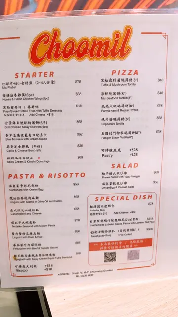 Choomil 啾咪 (大角咀) 网上订位即赚Rice Dollars 网址: https://s.openrice.com/QrLS0vYeD00 地址: 香港大角咀海庭道8號富榮花園一期7座地下15號舖 电话: +852 52321239