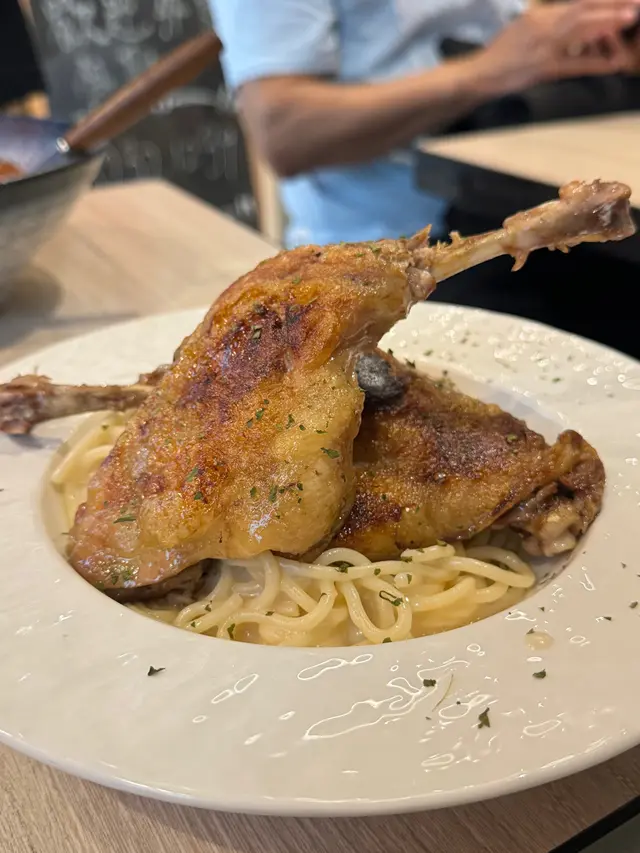 星期六日連續兩日油麻地上堂,之前見到大角咀呢間小店有油封鴨髀已經諗幾時先有得去,事關星期日小店休息。放學馬不停蹄去大角咀行左20分鐘到小店,屋邨街坊鋪有親切感。空間不大,連吧枱最多坐12人多d.時間關係點左鴨髀白汁意粉,紙包飲品唔洗加錢。上餐都好快,鴨髀都有油脂香味,不會過鹹,意粉稍微軟左少少,白汁配起來有d溜。意粉可以換蕃茄口味或者沙律菜及加錢轉韓式紫菜包飯捲,不過個人唔食蕃茄又無飯癮就無辦法。食完一隻其實都好飽😋…查看更多