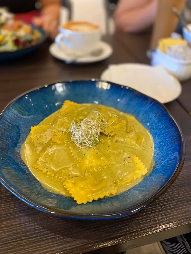 今次到黃竹坑站附近吃午餐,之前和朋友來過享用晚餐,覺得不錯便再來一次,而且黃竹坑食肆選擇比較少。來到既時候大概一點,已經滿座和排長龍,我們大約等了半小時便可以入座。這餐廳曾經的招牌菜式是擔擔麵和炸豬扒,可是炸豬排售完,擔擔麵亦沒有出現在菜單上。當想下單既時候,侍應生提給捲餅售完,我便點了意大利雲吞。但當想點珍珠奶茶,沒有珍珠飲料已售完。不知道是遲用餐,還是食材非常有限,有點失望😭意大利雲吞味道不錯的,內裡有芝士和蘑菇,配上青醬。而朋友的沙律製作很認真,有燒粟米和不同食材。但原本並不打算來這裡吃西餐,而且還要等了很長時間,短期內不會再來。查看更多