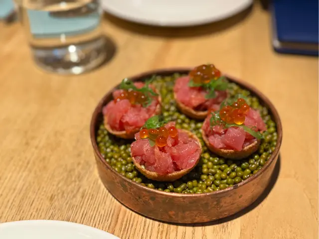 這間人氣高級西班牙餐廳位於中環歌賦街,主打正宗地道的西班牙美食及飲品,由外國人親自主理,嚴選優質時令食材,是米芝蓮必比登推介JUNO的姊妹店。店內環境寬敞舒適,樓底高身特別靜謐,裝潢以歐陸風格為主,色調藍白色充滿異國風情,好適合約會或慶祝。品味套餐 - $580/位每位包括所有的小吃,一道主食,一道甜品俄羅斯薯仔沙律鋪滿粒粒醋浸三文魚籽,一咬爆出鮮甜的水份及淡淡的醬油香,軟糯的薯仔蓉融合滑順豐厚的吞拿魚蛋黃醬,更有少少細膩的吞拿魚碎肉,蘸上多士片上更具口感。吞拿魚他他切成小粒的吞拿魚刺身柔軟且無筋,有濃厚的魚味,又有滑膩的牛油果醬、海藻及三文魚籽,脆餅增添口感。橡果黑毛豬火腿配蕃茄脆包嚴選優質的50個月伊比利亞橡果火腿,油脂豐富且細膩,滑順柔嫩有極致濃郁的榛果香氣,新鮮烤脆麵包塗滿細碎蕃茄,酸甜醒胃。酥炸火腿丸子新鮮自家製伊比利亞橡果火腿丸子,外層酥脆金黃而不膩,內餡濃郁滑順,火腿增添濃郁的香氣。炸帕德龍甜青椒採用特級初榨橄欖油,有橄欖天然的新鮮果香味,帕德龍甜青椒清新細膩不辣。爐烤橡果黑毛豬一片片肥瘦相間的黑毛豬腩肉軟腍多汁不柴,可蘸上烤紅椒堅果醬香甜濃郁,又有新鮮手切炸洋薊有淡淡的堅果香、椰菜仔及雪梨粒平衡膩感。烤鱸魚配燉西班牙煙肉腸薯仔烤焗法國鱸魚柳厚度十足,結實細嫩且無魚刺,有淡雅的清甜味,有酸甜爽脆的漬醃紫椰菜,煙燻紅椒粉肉腸燉鷹嘴豆雜菜富層次,西班牙香腸有煙燻和紅椒香。焦糖忌廉布丁自家製雲喱拿焦糖布丁細緻滑順得幾近入口即化,特別加入香草籽,有濃郁香醇的蛋香和焦糖香氣,精選莓果有士多啤梨、藍莓及紅桑莓酸酸甜甜。巴斯克芝士蛋糕西班牙巴斯克焦香軟心芝士蛋糕,外層焦香而內裡濕潤滑順,保留了豐富且醇厚的芝士風味,雜莓醬酸甜帶有水果的香氣。Peach Tea - $90白桃茶帶有淡雅獨特的錫蘭紅茶清新,再加入香甜的蜜桃果泥,混入酸甜的檸檬汁,酸甜平衡好清爽。English Breakfast Tea - $40茶湯口感紮實飽滿,帶有特殊的麥芽香。…查看更多