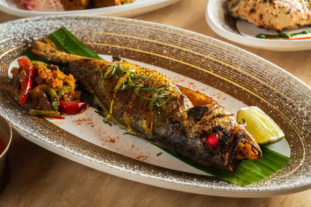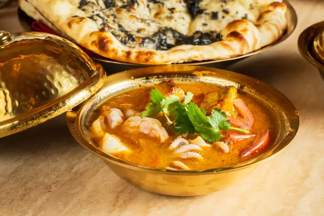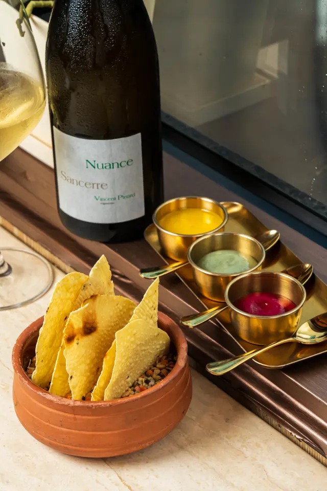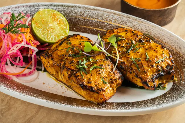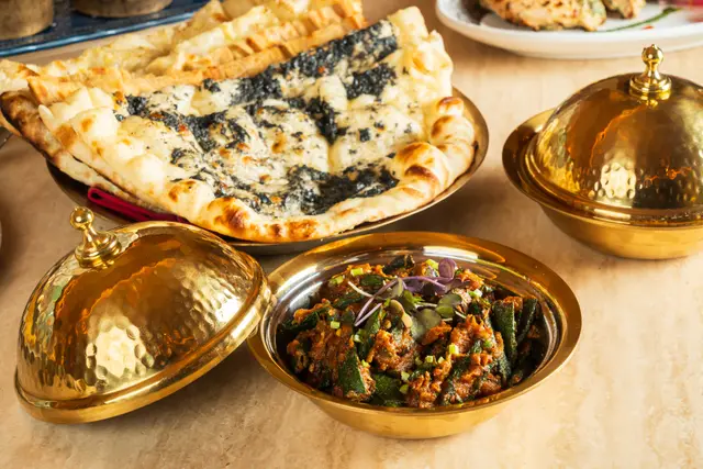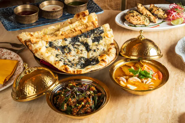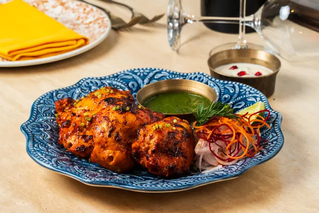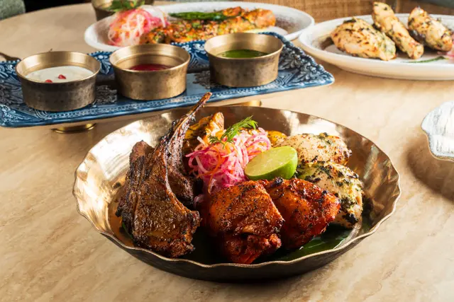 餐厅:CHUTNEY地点:中环云咸街菜式:印度菜餐牌:前菜、招牌奶油咖喱、炭火烤、咖喱、蔬菜、招牌菜、印度煲仔香饭、印度烤饼、饭。饮品有招牌鸡尾酒、mocktail、红白酒、多款其他酒精饮品等。一坐低就有免费薄脆薄饼四片配三色黄红绿辣酱,食落脆口香辣开开胃。马拉炒蚬 马拉炒蚬有十几只连壳马尼拉蚬热辣辣炒起,肉好嫰滑,同辣椒、蒜、洋葱、咖哩叶同炒,仲有少见嘅蕃石榴籽,甜甜哋,好特别!酱汁用森巴酱同另外65酱,辣辣哋好惹味。炭火烤羊架炭火烤羊架有一客三大件澳洲羊架,烤得好嫩口,味道唔膻,啖啖肉又有肉汁,外围香料好香。仲有蕃茄酱另上,可加添清新感觉。中间伴有红白萝卜丝同洋葱丝,可解腻。伴有青柠一件。牛肋骨咖哩 牛肋骨咖哩有慢煮美国牛肋骨三大件,整得非常腍,牛味好浓,外围香料味道都唔错!个汁有好多洋葱粒,加上少量蕃茄汁,好味道。Bottled WaterAcqua Panna - Still 呢度仲有柠檬片加落啲水度。今餐食物好唔错,牛羊蚬都好味。餐厅装潢好金碧辉煌,好有皇宫feel。窗边座位景色见到大馆同半山大厦,好开扬。 …查看更多