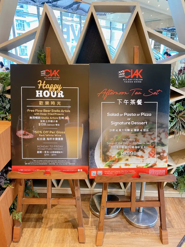 CIAK - All Day Italian (太古城中心) (太古) 网址: https://s.openrice.com/QrLS068W700 地址: 香港太古太古城道18號太古城中心2樓265號舖 电话: +852 21165128