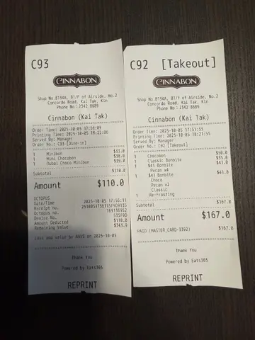 这间人气玉桂卷专门店其中一间分店位于九龙城启德AIRSIDE,来自西雅图的品牌,全球拥有超过1,200家分店,风靡欧美等地。除了多款口味的招牌玉桂卷外,还有曲奇、意式三文治等;手调饮品更有咖啡、茶品、冰泡咖啡、梳打特饮及鲜榨柠檬等。店内设有多个堂食座位,环境宽敞舒适;自设焗炉即场每日新鲜烘焙食品。士多啤梨迷你卷期间限定新产品,外酥内软的迷你卷带有糖霜的甜味,面团柔软蓬松有嚼劲,采用澳洲士多啤梨酱,酸甜适中好清新。士多啤梨曲奇忌廉Chillatta期间限定新产品,沙冰加入奶油打得幼滑细腻,充满新鲜草莓,更有酥脆的曲奇碎。猪柳芝士意式三文治经热压的意式三文治金黄酥脆,面团有别于一般的,特别柔软蓬松不干柴,夹著半溶化的芝士及嫩滑多汁的猪柳。火鸡芝士意式三文治火鸡片嫩滑有嚼劲有肉感。冻草莓抹茶鲜奶三种颜色层次分明,浓郁的抹茶有沉稳的茶香回甘,又有酸甜的草莓酱及顺滑的鲜奶。一口经典玉桂卷采用玛卡拉肉桂,带有淡淡的花香和类似丁香的复杂香气,味道清新,与其他肉桂相比的味道较为柔和。一口朱古力卷换上特浓的朱古力酱香而不甜。一口焦糖胡桃卷招牌经典卷上覆盖著香甜的焦糖糖霜,又有香脆的胡桃粒。滋味一口卷红番椒洋葱红色的甜椒及洋葱很香甜,味道类似薄饼。滋味一口卷罗勒酱菠菜嫩滑的菠菜有罗勒酱的清新滑顺。滋味一口卷蘑菇蕃茄有爽滑的蘑菇及酸甜的蕃茄。焦糖咖啡玉桂卷甜中带苦的焦糖咖啡,浓郁且顺滑有层次。花生酱黑朱古力卷换上特浓的黑朱古力酱很香醇,淋上满溢的花生酱细致柔滑。…查看更多