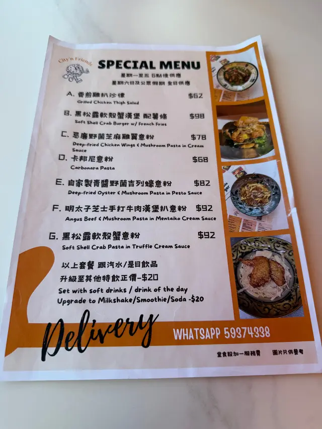 屯門新潮打卡餐廳 City’n Friends 🍊班戟、薯寶、果昔都超推薦🥞 豬柳蛋芝士班戟仔配粒粒薯寶楓糖班戟配雞蛋、豬柳,加埋熱溶芝士,鹹甜好夾。班戟偏薄身軟腍。薯寶炸得香脆,薯味濃郁,畫龍點睛。🥤 紅肉火龍果乳酪果昔火龍果同奶昔非常夾,奶味香濃,口感綿滑細密,層次豐富。天然桃紅色靚到扣人心弦,打卡一流。套餐$38就有一杯,性價比高。🍴 環境橙色格調為主,色彩鮮明超吸睛,超新潮設計,入到去令人眼前一亮。俺流塩らーめん (新都會廣場)…查看更多