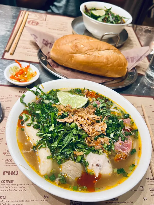 同鄰居過嚟添馬艦湊下熱鬧,出去之前,搵吓有咩快食之選。剛好搭車嘅時候搵咗呢一間餐廳,其實出得嚟金鐘食嘢都唔會預咗有返咁上下價錢。不過越南粉嚟講,價格算係偏高。三個人叫咗兩碗湯粉,同埋一盒牛肉法包。一開始想揸個檸檬汁嘅時候,點知個檸檬係乾真真榨唔到汁,突然間心感不妙,會唔會伏咗呢?再飲啖湯時,幾鍾意佢有大量嘅薄荷葉加埋湯底甜甜地相當清新。個人口味就唔係好鍾意食扎肉同埋出街食丸類產品,不過越南粉大致上都係嗰啲配搭。不過佢啲牛丸有幾彈牙,條豬肉腸就冇乜驚喜。反而鍾意佢個牛腱多過生牛肉,起碼個牛腱食到牛味,但係生牛肉就一般般。至於個粉,就似幼米線多啲,同我食開嘅越南粉有啲出入。另外都有試埋鄰居個發包,反而呢個脆得來有驚喜,同埋啲汁嚟食都幾掛汁,牛肉杜汶得夠腍。…查看更多