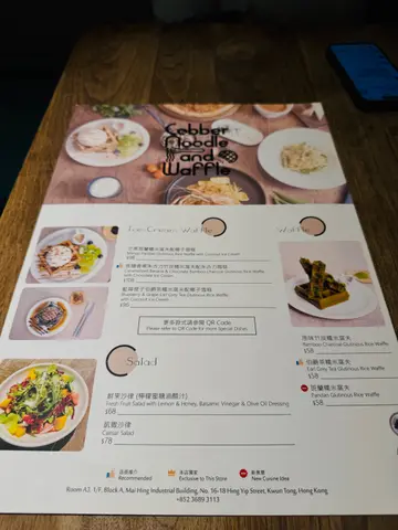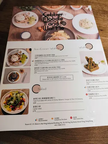 今日同朋友嚟到观塘呢间人气窝夫 Cobber Noodle and waffle!!! 想食好耐架啦😍 好彩一早book咗位 入到去全场都系满人! 一坐低枱面有餐牌可以睇住先 好快就有QR code自助落单好方便👍🏻 QR code入面有更加多嘅款式😍 好多嘢都想食 都拣咗一阵终于决定好! 炸鱿鱼配芥末籽蛋黄酱即叫即炸热辣辣上枱劲香😍 鱿鱼弹牙 食落唔会觉得油腻😌 配埋灵魂酱汁 芥末籽蛋黄酱系绝配 如果芥末味再浓啲就更好🤭 带子海鲜喇沙意粉睇餐牌见到喇沙配意粉就即刻想试吓😋 一嚟到三粒带子劲大粒 煎得岩岩好 食落弹牙无雪味👍🏻 意粉软硬度适中 喇沙挂汁甜甜哋唔会好辣 推👍🏻 自家制千岛酱慢煮鸡肉香草Pizza千岛酱一啲都唔吝啬🤩 大大旧鸡 食落啖啖肉仲好滑 满满蛋白质😛 热辣辣芝士仲会拉丝 一定要趁热食! Honeycomb Latte脆脆焦糖卖相非常适合打卡😬 等佢慢慢溶咗加埋落latte一齐饮就唔会好甜😌 新鲜蜜瓜配焙茶糯米窝夫主角出场😍 焙茶爱好者必食甜品!先讲新鲜蜜瓜🍈超甜劲多汁 雪糕拣咗椰子味 糯米窝夫真系第一次食 有种烟靭嘅口感 配上脆脆嘅窝夫 外脆内软配上雪糕真系好好食😋 每一啖嘅中后段 焙茶味散发出嚟 真系大推🫶🏻 整体嚟讲 呢间Cobber noodle & waffle 环境舒适 食物质素真的不错 食物款式多样化 下次一定要再嚟试佢其他窝夫😋…查看更多