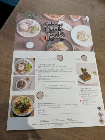 估唔到系观塘有间楼上铺不论主食👉🏻小食👉🏻甜品👉🏻饮品都好有质素👍😋原来前身Cobber Coffee and Tonys Pastry现在姊妹店 Cobber Noodle and Waffle室内环境舒服适合朋友聚餐庆生都几好员工服务几好又有礼貌👍虽有限时晚市100分钟不满座就算超时都无赶我们走昨晚星期一都满座八点钟都仲有人入座最好book 定位🥗🥗🍝🍝☕️☕️🍨🍨前菜👉🏻柠檬蜜糖醋配鲜果沙律非常色彩缤纷耀眼的沙律沙律菜非常新鲜沙律入面有好多新鲜果+芒果+士多啤梨+蓝梅小食👉🏻马苏里拉芝士焗薯蓉带子😋薯蓉相当绵滑充满浓浓芝士味 表面芝士焗到脆脆哋 入面有超厚肉嘅带子主食👉🏻山葵柚子八爪鱼忌廉意粉配搭几特别忌廉汁加咗山葵面头加咗柚子粒粒食落清新搭配Q弹的八爪鱼口感层次另外有得加$8转蒟蒻意粉甜品👉🏻新鲜蜜瓜配竹炭糯米窝夫窝夫做得好脆入面糯米好烟韧蜜瓜好新鲜清甜雪糕有好多选择仲有开心果味𠻹个雪糕好大球有人用嚟当庆祝生日𠻹饮品👉🏻泡沫咖啡正常奶类有多选择配合不同人需要👍饮品👉🏻姜汁撞奶甜品食得多所以试下饮品宜家开始凉凉地啱晒隐世门口…查看更多