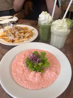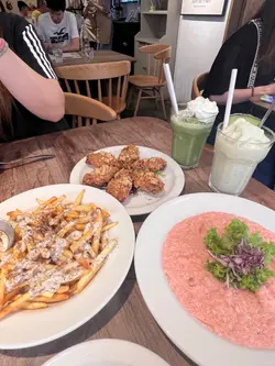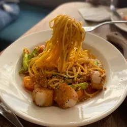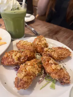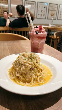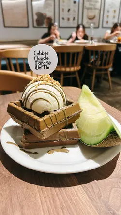 今日同朋友嚟到觀塘呢間人氣窩夫 Cobber Noodle and waffle!!! 想食好耐架啦😍 好彩一早book咗位 入到去全場都係滿人! 一坐低枱面有餐牌可以睇住先 好快就有QR code自助落單好方便👍🏻 QR code入面有更加多嘅款式😍 好多嘢都想食 都揀咗一陣終於決定好! 炸魷魚配芥末籽蛋黃醬即叫即炸熱辣辣上枱勁香😍 魷魚彈牙 食落唔會覺得油膩😌 配埋靈魂醬汁 芥末籽蛋黃醬係絕配 如果芥末味再濃啲就更好🤭 帶子海鮮喇沙意粉睇餐牌見到喇沙配意粉就即刻想試吓😋 一嚟到三粒帶子勁大粒 煎得岩岩好 食落彈牙無雪味👍🏻 意粉軟硬度適中 喇沙掛汁甜甜哋唔會好辣 推👍🏻 自家製千島醬慢煮雞肉香草Pizza千島醬一啲都唔吝嗇🤩 大大舊雞 食落啖啖肉仲好滑 滿滿蛋白質😛 熱辣辣芝士仲會拉絲 一定要趁熱食! Honeycomb Latte脆脆焦糖賣相非常適合打卡😬 等佢慢慢溶咗加埋落latte一齊飲就唔會好甜😌 新鮮蜜瓜配焙茶糯米窩夫主角出場😍 焙茶愛好者必食甜品!先講新鮮蜜瓜🍈超甜勁多汁 雪糕揀咗椰子味 糯米窩夫真係第一次食 有種煙靭嘅口感 配上脆脆嘅窩夫 外脆內軟配上雪糕真係好好食😋 每一啖嘅中後段 焙茶味散發出嚟 真係大推🫶🏻 整體嚟講 呢間Cobber noodle & waffle 環境舒適 食物質素真的不錯 食物款式多樣化 下次一定要再嚟試佢其他窩夫😋…查看更多
