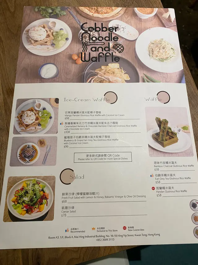 估唔到係觀塘有間樓上鋪不論主食👉🏻小食👉🏻甜品👉🏻飲品都好有質素👍😋原來前身Cobber Coffee and Tonys Pastry現在姊妹店 Cobber Noodle and Waffle室內環境舒服適合朋友聚餐慶生都幾好員工服務幾好又有禮貌👍雖有限時晚市100分鐘不滿座就算超時都無趕我們走昨晚星期一都滿座八點鐘都仲有人入座最好book 定位🥗🥗🍝🍝☕️☕️🍨🍨前菜👉🏻檸檬蜜糖醋配鮮果沙律非常色彩繽紛耀眼的沙律沙律菜非常新鮮沙律入面有好多新鮮果+芒果+士多啤梨+藍梅小食👉🏻馬蘇里拉芝士焗薯蓉帶子😋薯蓉相當綿滑充滿濃濃芝士味 表面芝士焗到脆脆哋 入面有超厚肉嘅帶子主食👉🏻山葵柚子八爪魚忌廉意粉配搭幾特別忌廉汁加咗山葵面頭加咗柚子粒粒食落清新搭配Q彈的八爪魚口感層次另外有得加$8轉蒟蒻意粉甜品👉🏻新鮮蜜瓜配竹炭糯米窩夫窩夫做得好脆入面糯米好煙韌蜜瓜好新鮮清甜雪糕有好多選擇仲有開心果味𠻹個雪糕好大球有人用嚟當慶祝生日𠻹飲品👉🏻泡沫咖啡正常奶類有多選擇配合不同人需要👍飲品👉🏻薑汁撞奶甜品食得多所以試下飲品宜家開始涼涼地啱晒隱世門口…查看更多