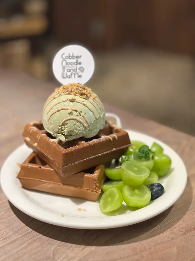 新鮮蜜瓜配焙茶糯米窩夫