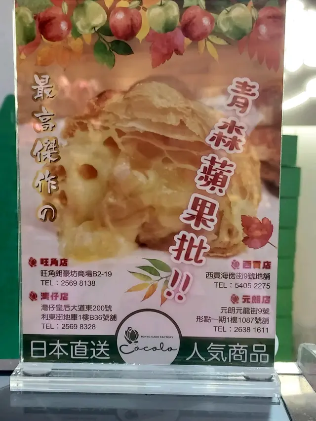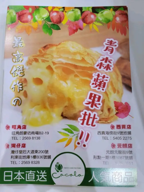 次次途徑利東街地庫都會飄嚟一陣香噴噴嘅烘焙香氣,cocolo 店面簡潔乾淨以白色同綠色為主調,既清新又文青,令人總會想停下腳步👣店內主打日本直送全人手製作嘅青森蘋果批,但甫一進店就見到除咗蘋果批之外仲有好多款唔同嘅熱批,有鹹有甜,另一邊嘅凍櫃仲有多款切餅同macaroon 等等青森蘋果批大大件成個拳頭👊咗大個,千層酥皮真係嚇你一跳,千層酥中嘅空氣感更添鬆化酥脆感,內餡青森蘋果醬完全無其他添加,完完全全係新鮮果肉為基底,加上甜而不膩嘅吉士醬,香甜又清新。日本Tiramisu 蛋糕🍰哩個Tiramisu 有別於一般典型嘅蛋糕,以咖啡朱古力海綿蛋糕取代lady fingers ,加上剛好嘅鮮奶油再灑上朱古力粉,甜度唔算太高😋Read More