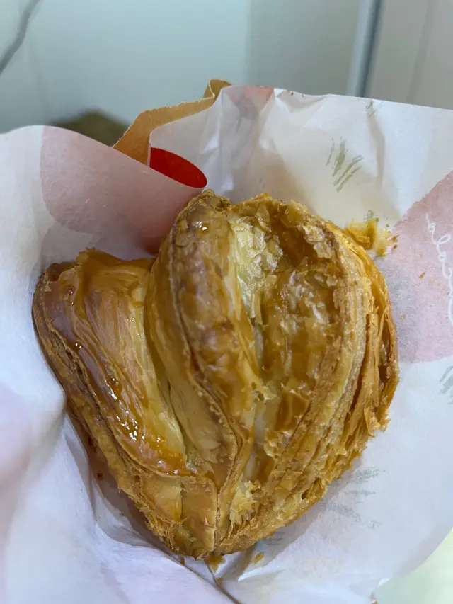 每次經過這間分店都聞到好香😍今次既蘋果批係同事請的 所以我不知道價錢 (印象中好像大概$33個🤔?)佢個酥皮真係做得唔錯 好厚好酥脆 面頭搽左層糖漿😬可能酥皮太搶戲 顯得個餡料比較少 但食得出青蘋果嘅甜酸味🍏👍🏻其實味道不錯 都幾大個 但性價比不算高Read More